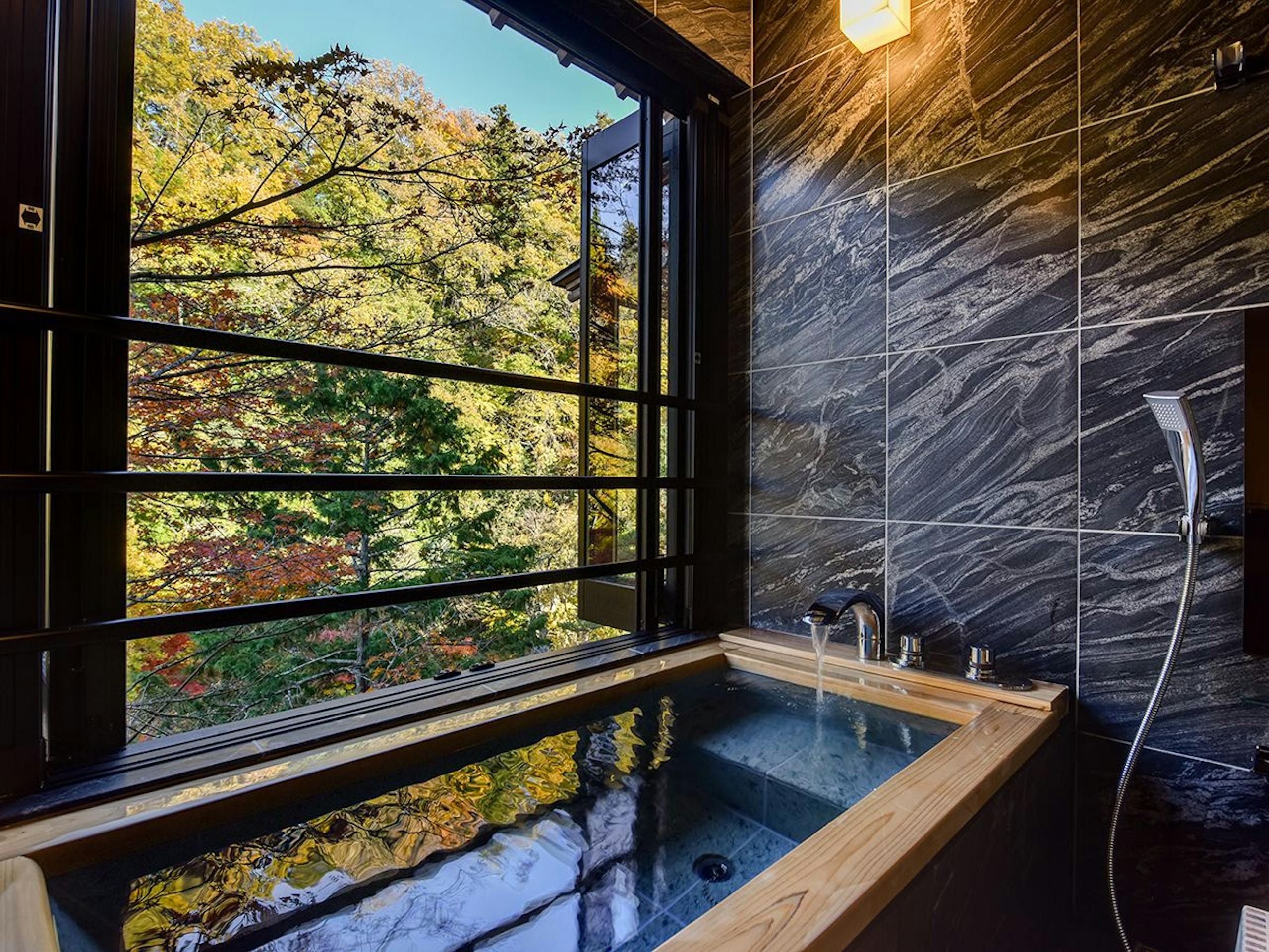 温泉に浸かりながら、外の景色や空気を感じる、癒しの時間をふたりでどうぞ。
