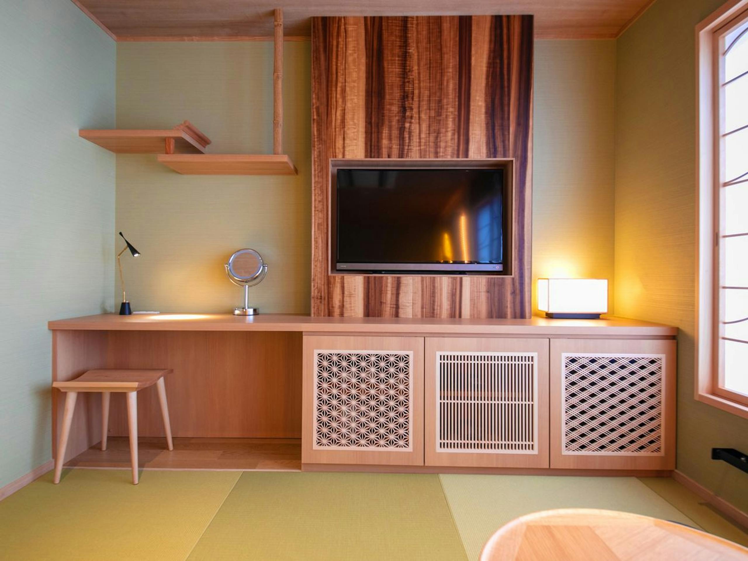 組子模様の美しさや、木目の感じなど、木のぬくもり感じる温かな空間。