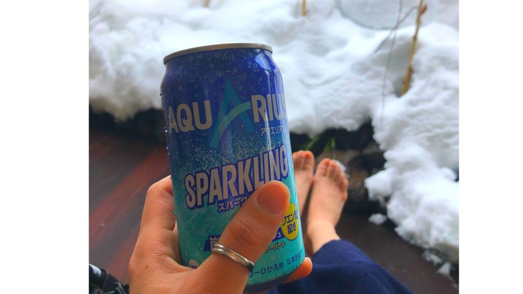 アクエリアスの他に小さいビールもサービスでありました。1人1本ずつありますよ。