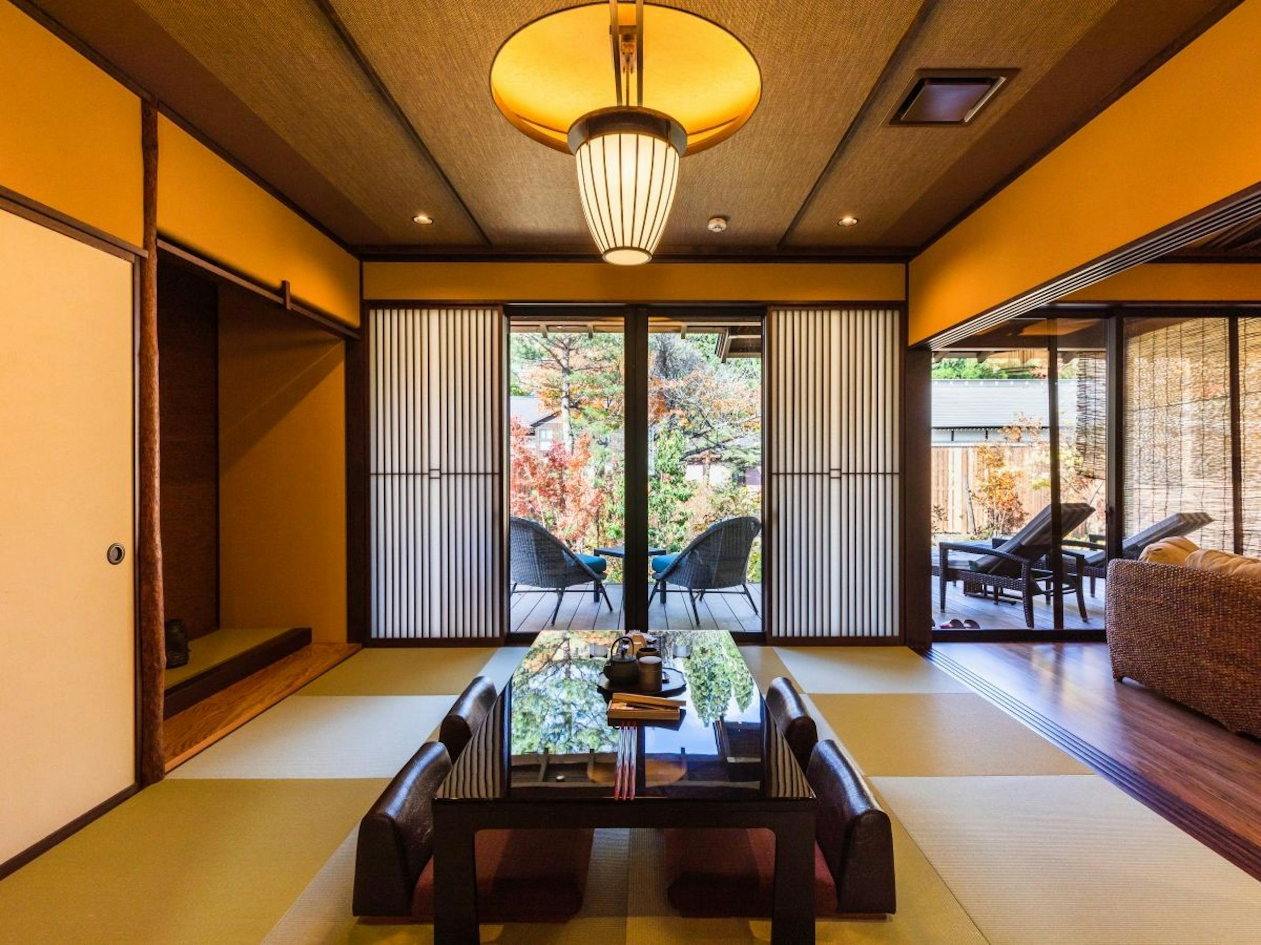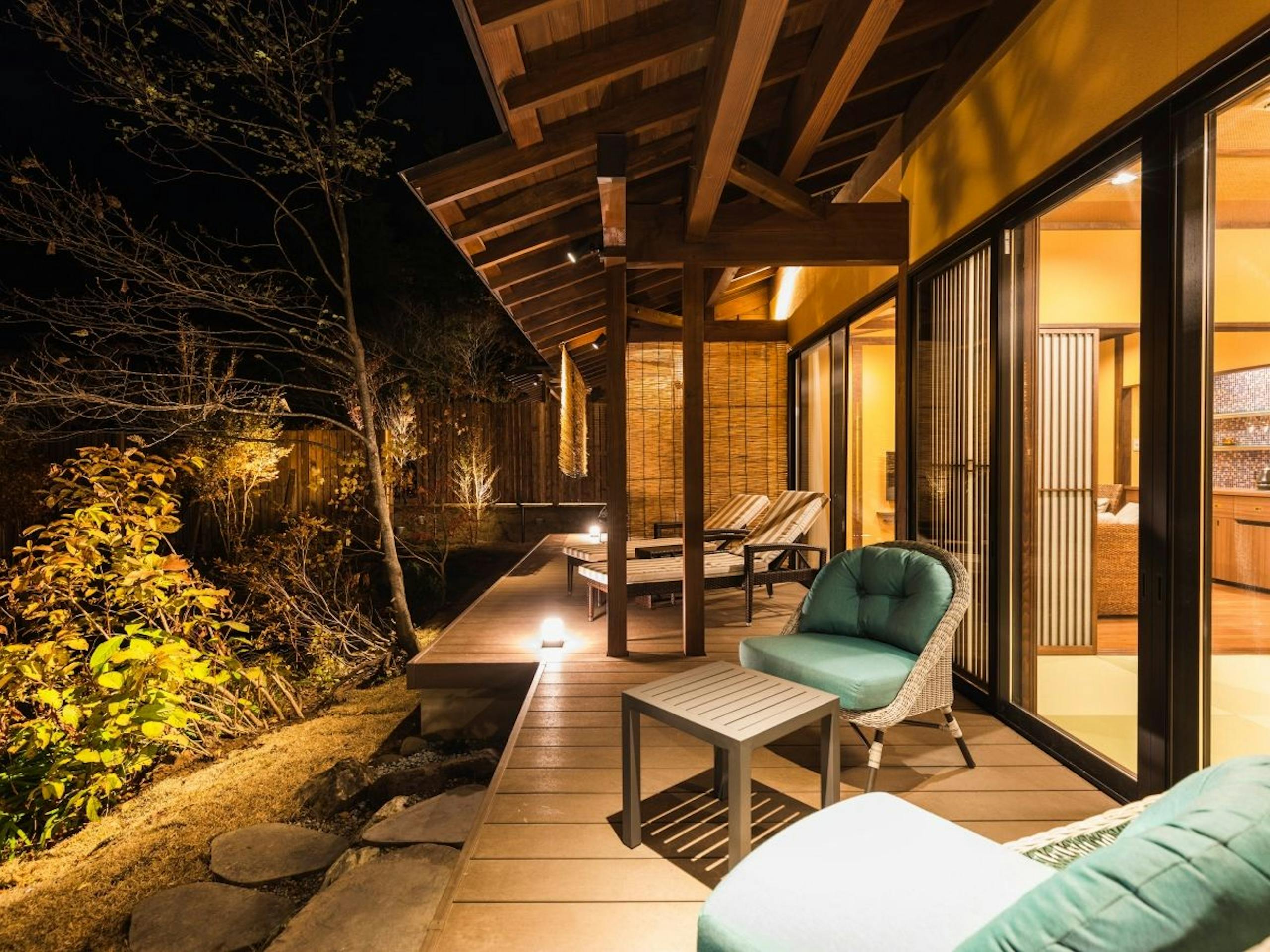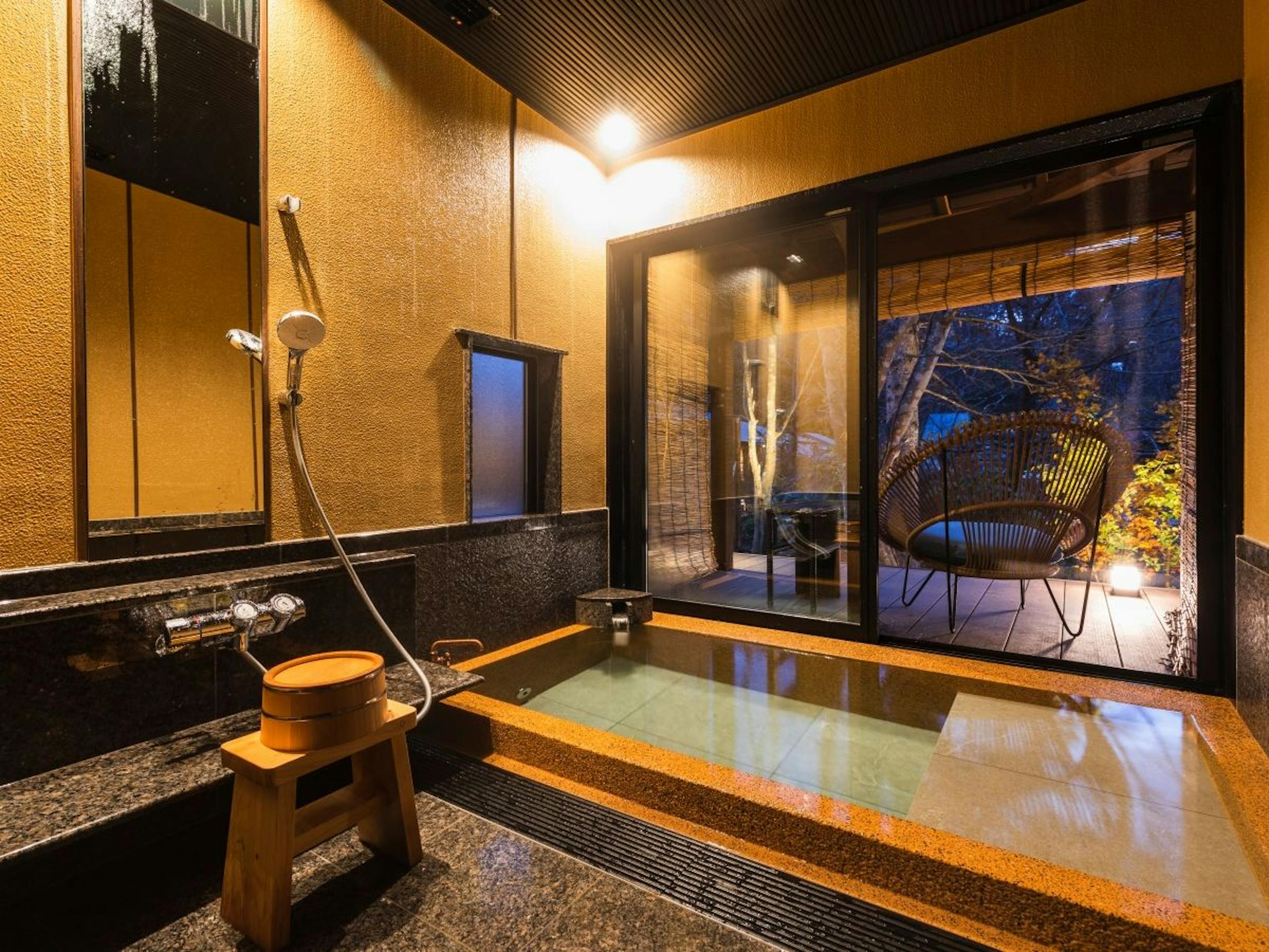 こちらは和の設計匠松葉啓志がプロデュースした、半露天風呂付の離れ個室。