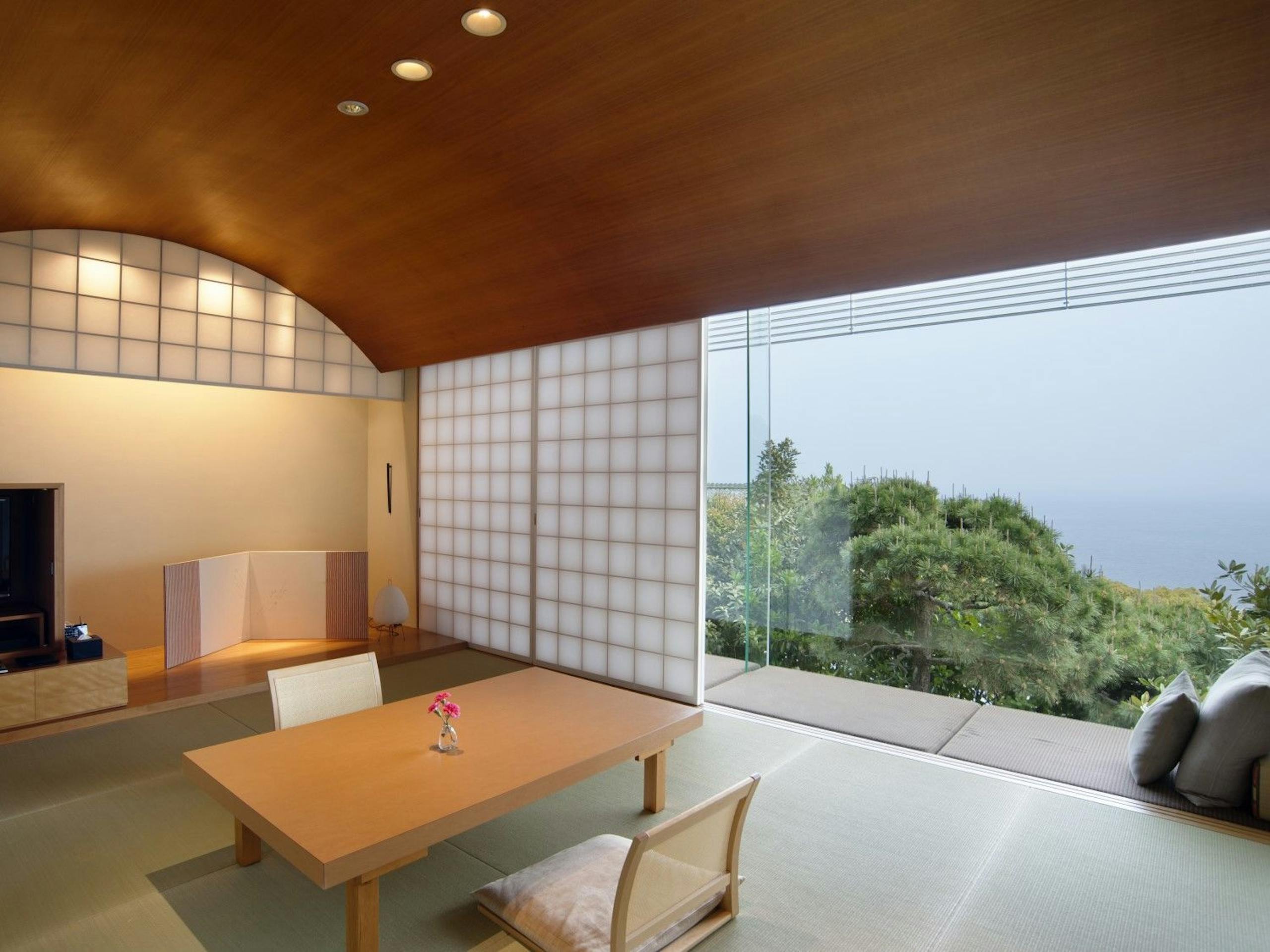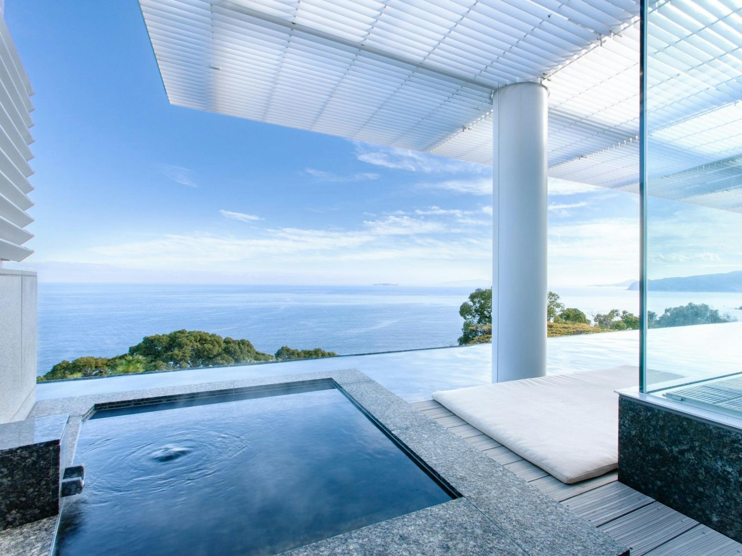 目の前は相模湾。水とガラスと海に包まれて、過ごす非日常的空間。ラグジュアリーなインテリアやデザインも魅力的です。