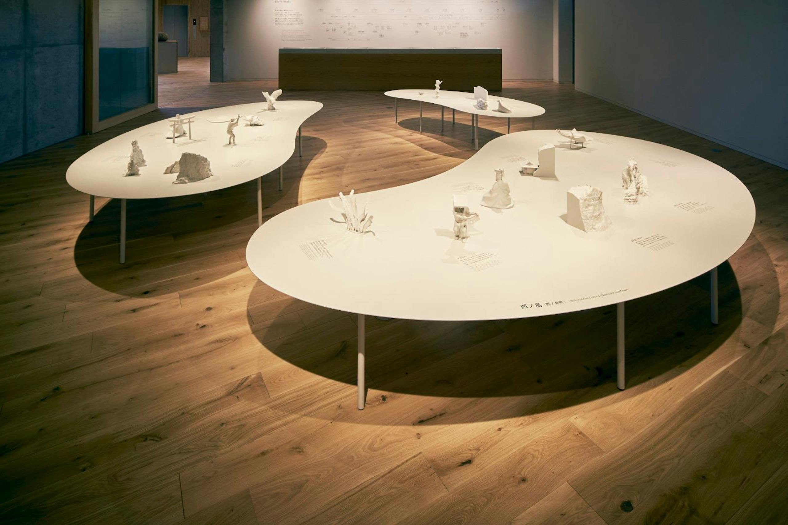 展示室ジオルームでは、”本物に触れるための予習の場”として白い模型が展示されています。