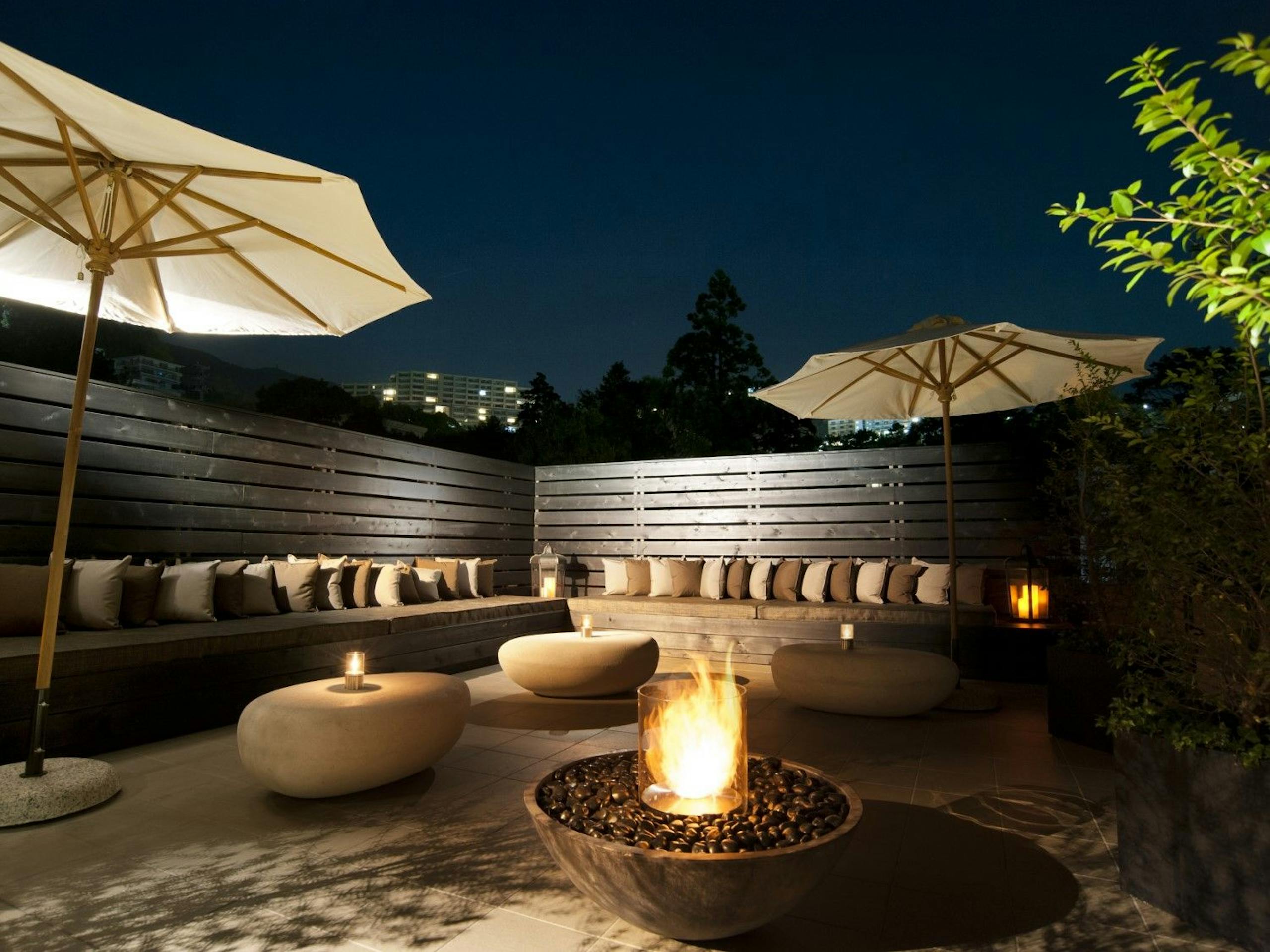 食後の一休みにテラスで揺れる炎を見ながら、ゆっくり過ごすひととき。