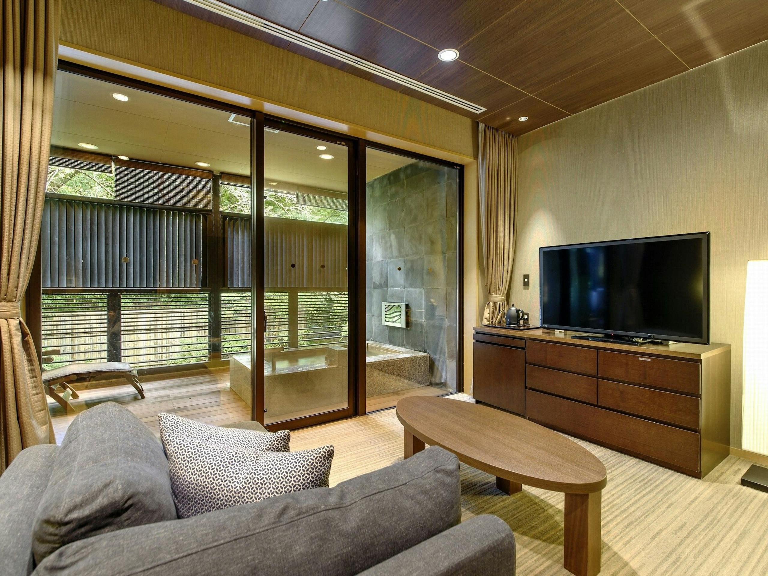 全室温泉露天風呂付の贅沢なしつらえの客室。