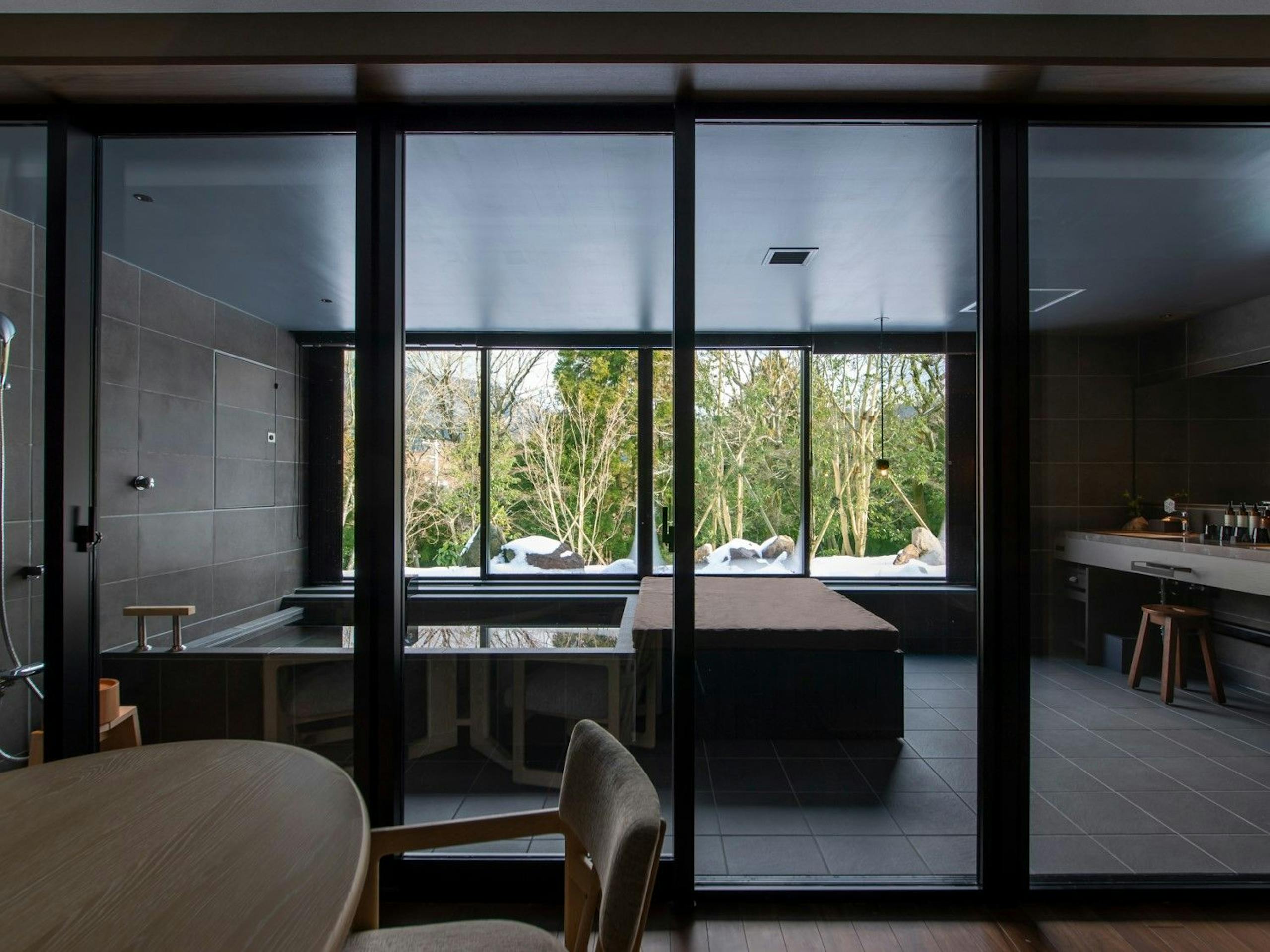 客室風呂に浸かりながら、四季折々の表情を魅せる木々の姿を楽しめますよ。