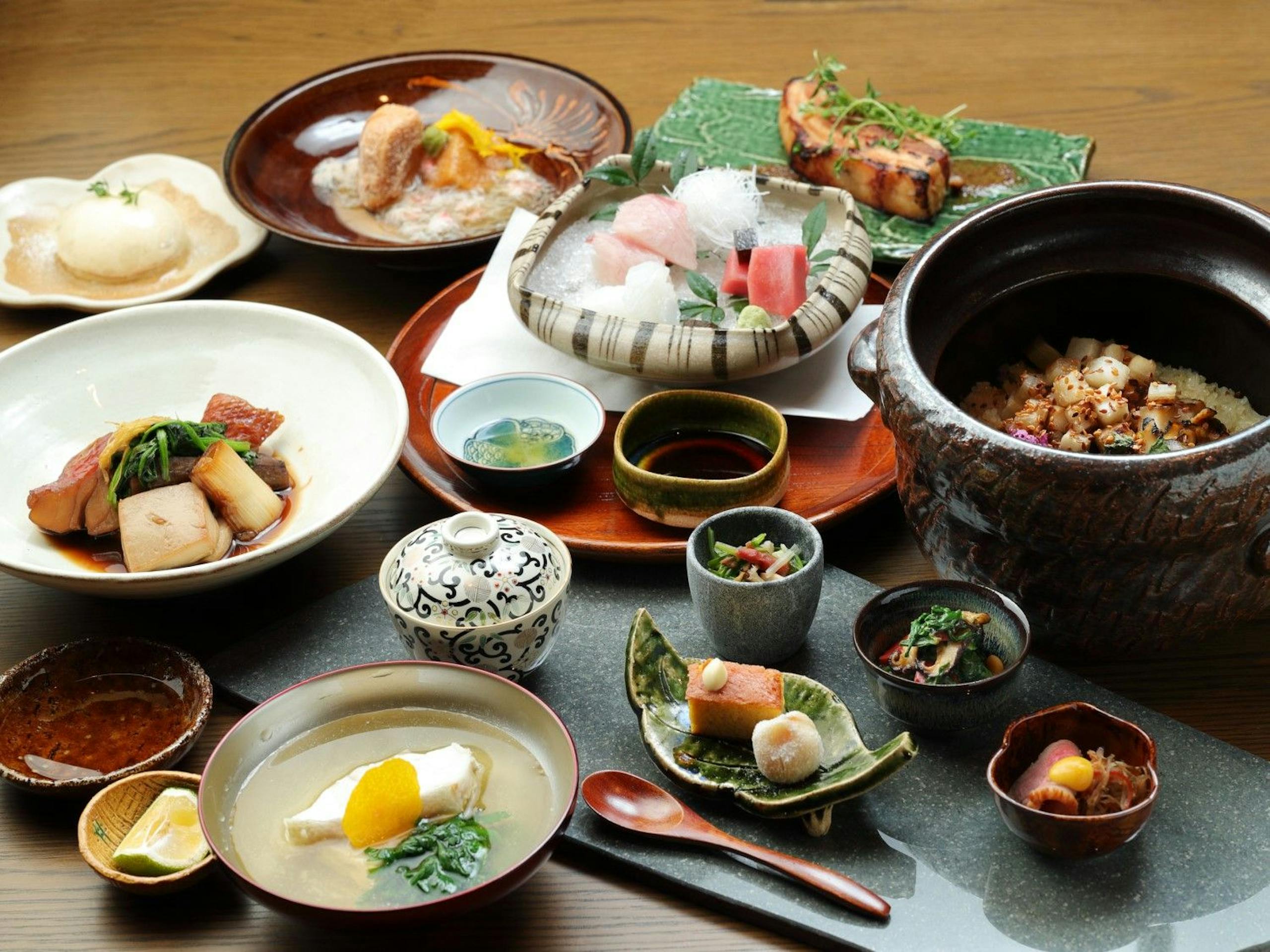 陶器の入れ物の中には、ふわふわの卵焼きや鰈の西京焼き…。