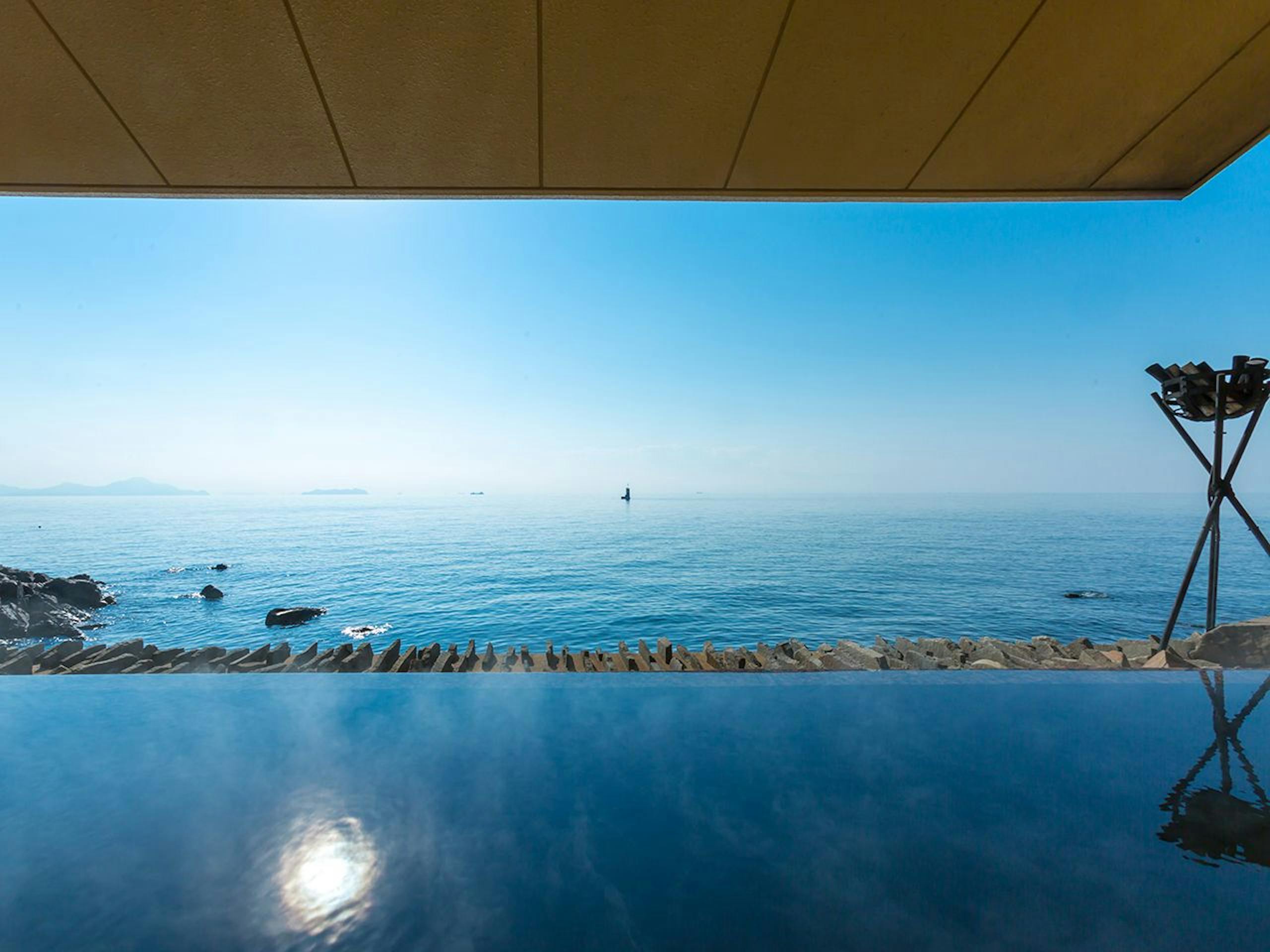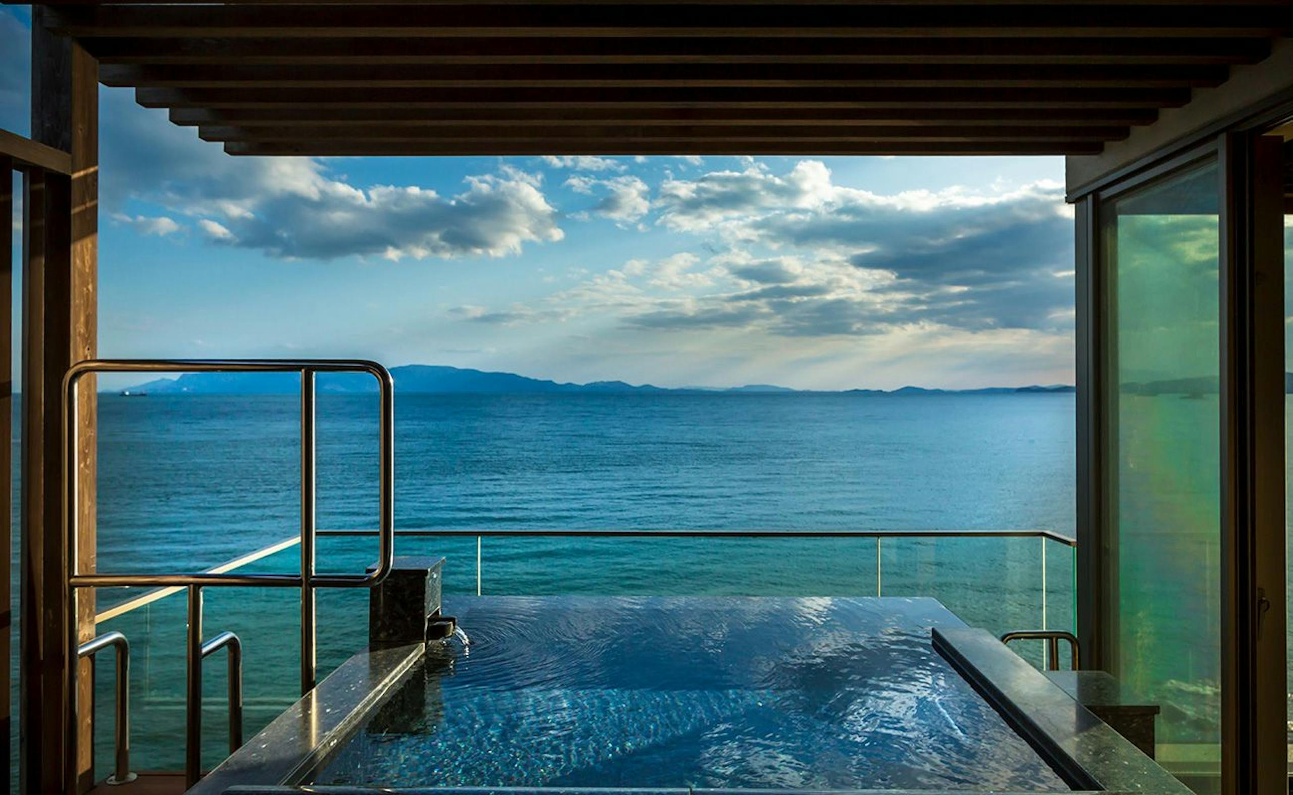 瀬戸内海の広大な海を、温泉に浸かりながらふたりじめ。