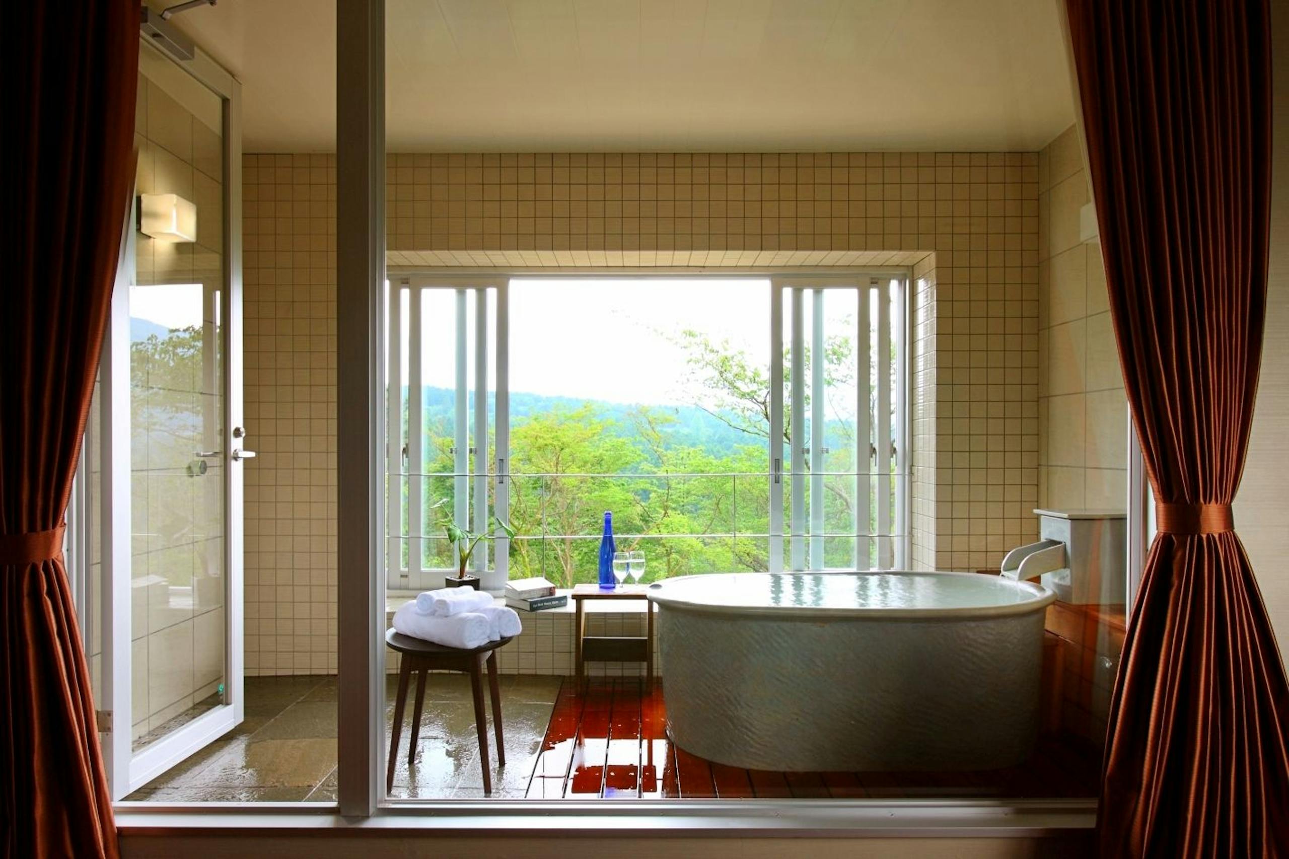 全室すべてが大涌谷温泉かけ流しの展望露天風呂付。
