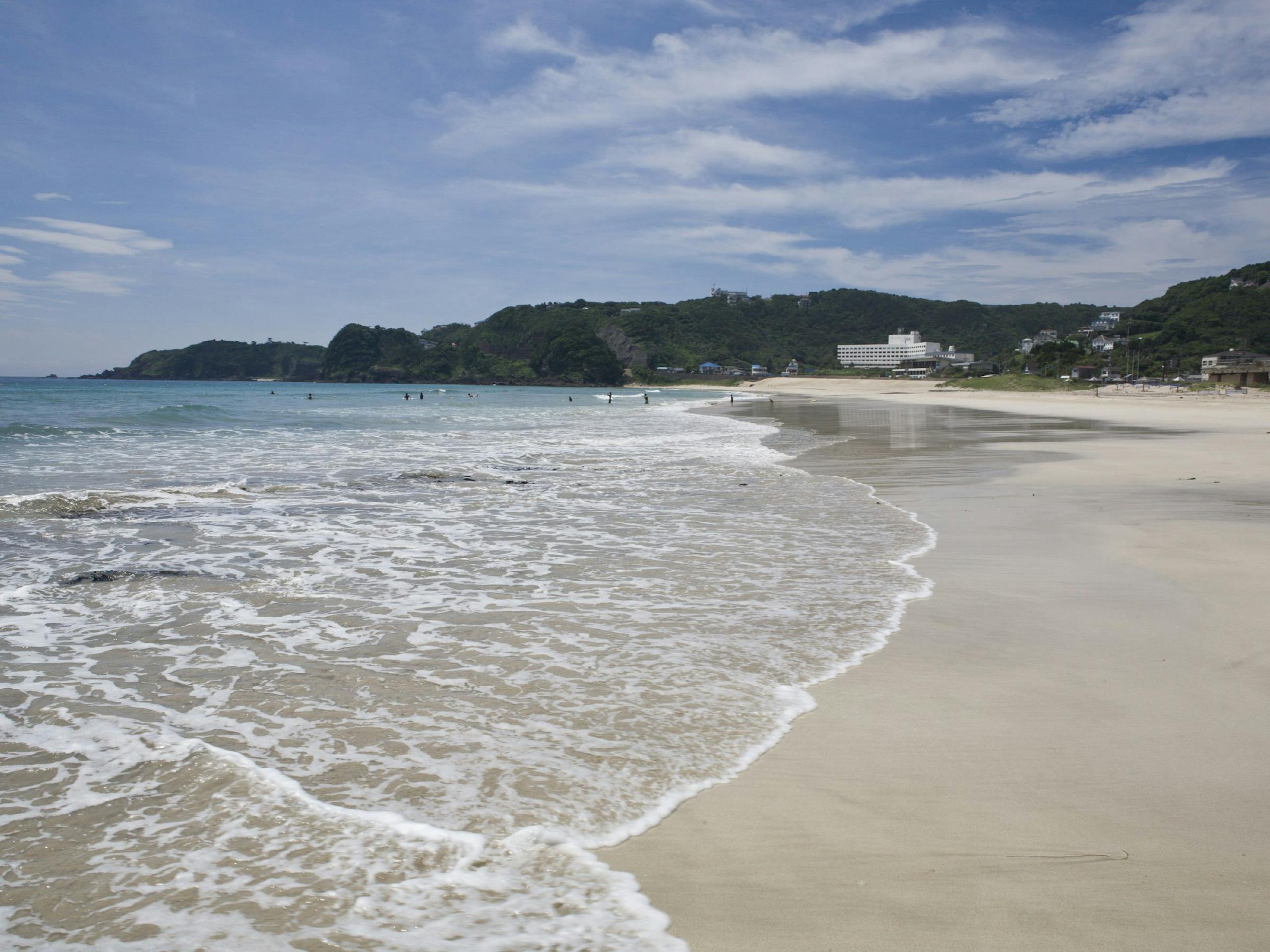 白い砂浜に青い海が綺麗な、白浜海岸のすぐ目の前に佇むホテル。