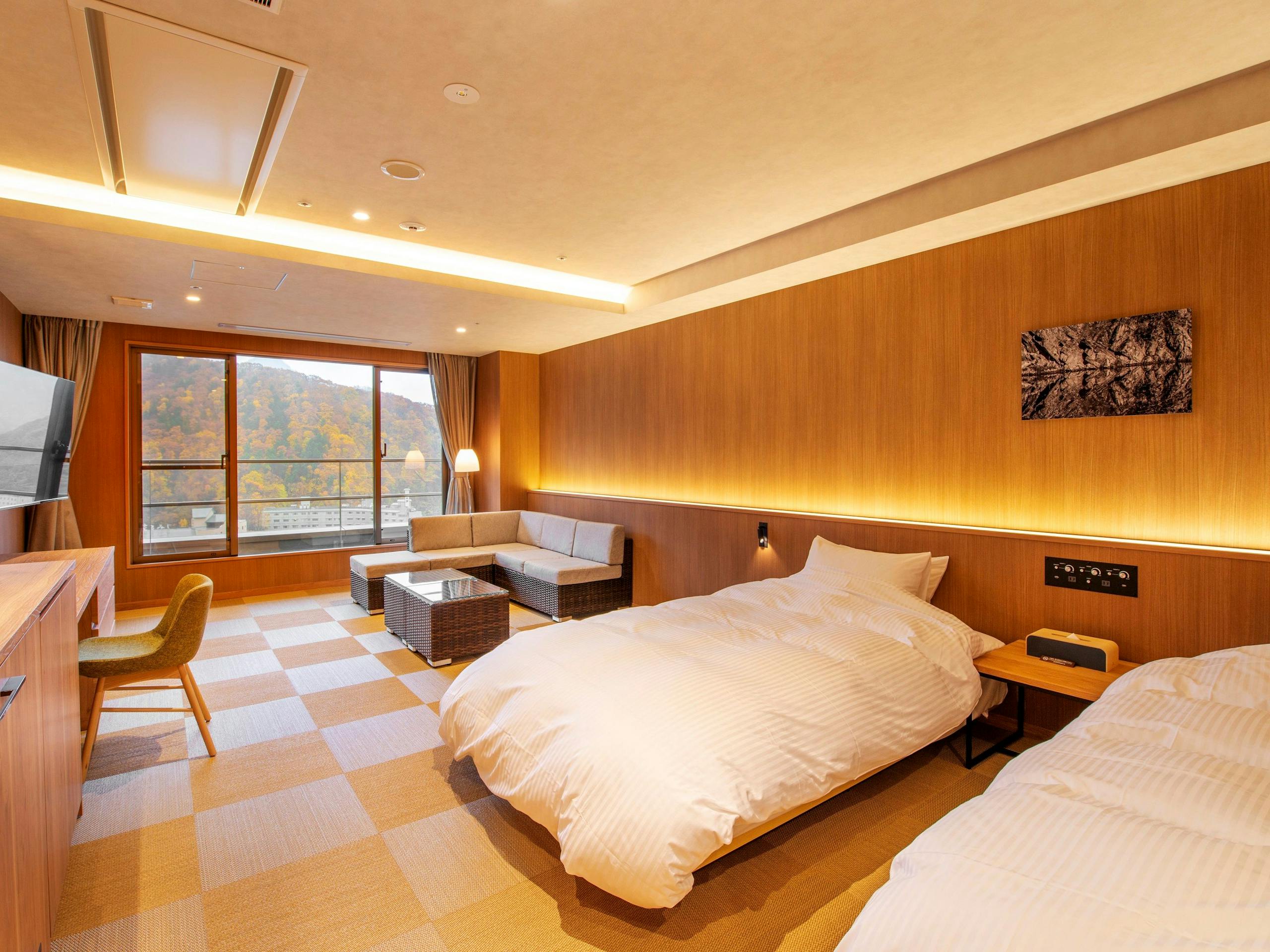 綺麗な展望が見渡せる特別室の「展望サウナ付洋室」