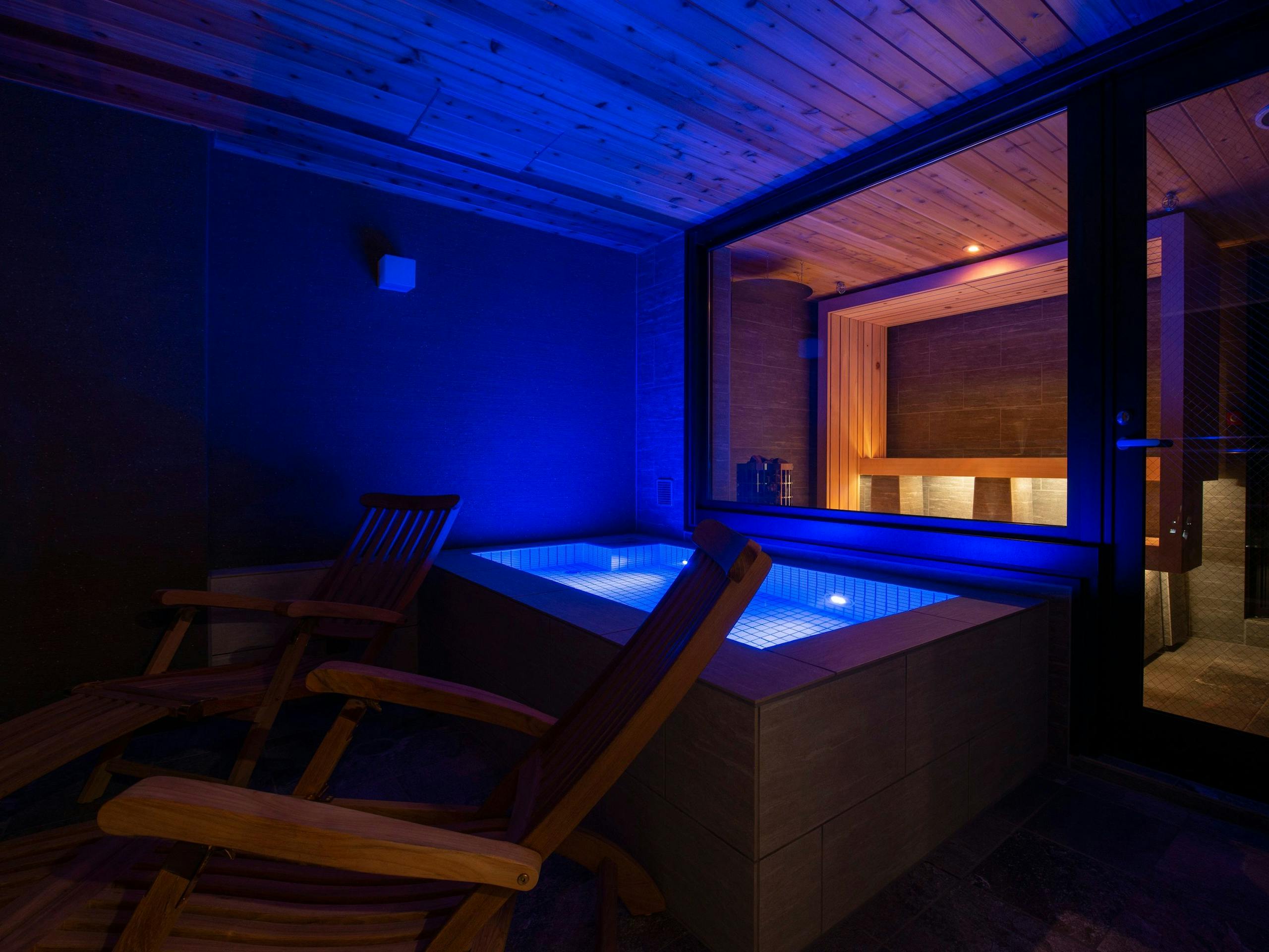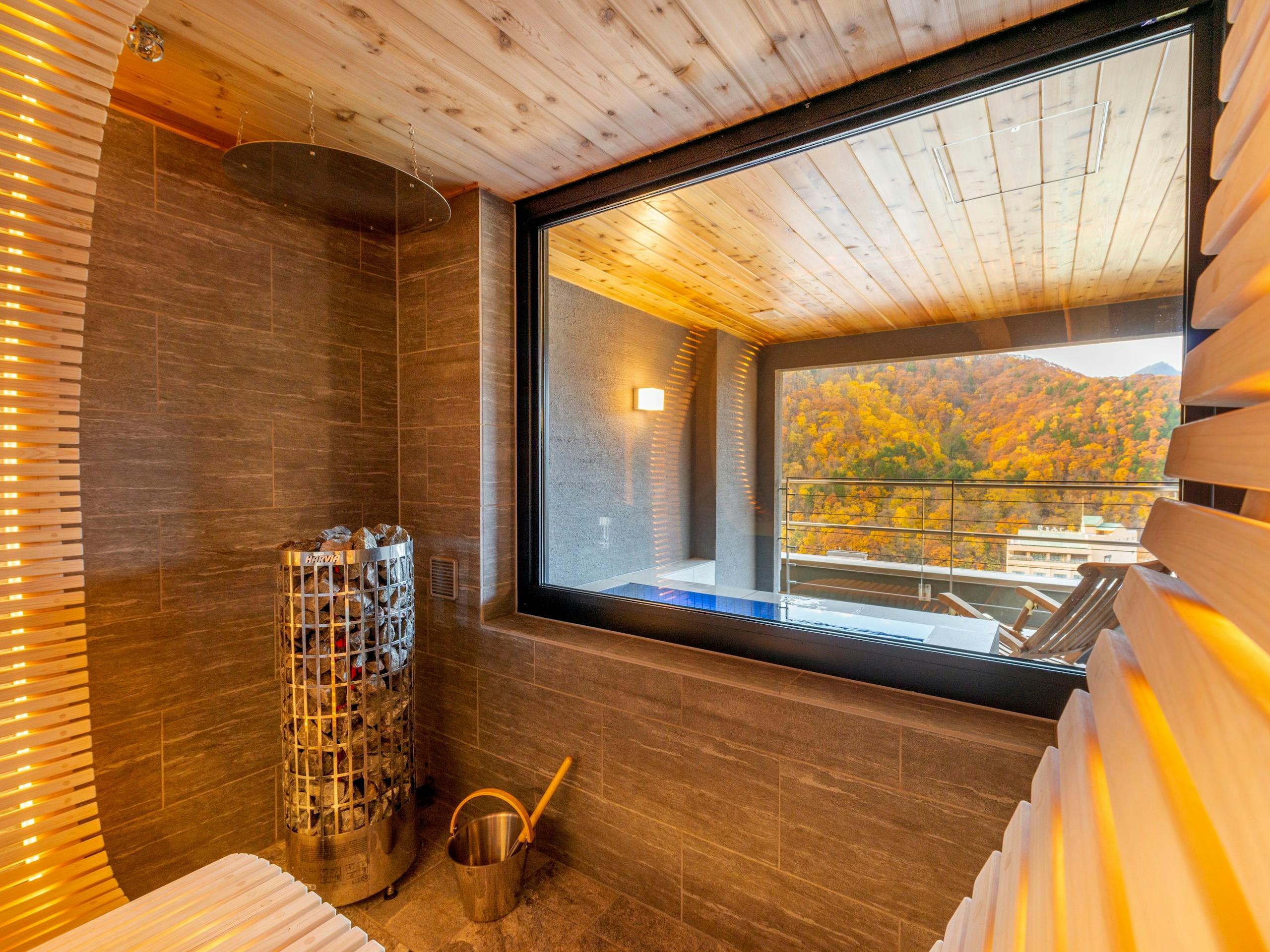このお部屋には、斬新なスタイルのサウナがプライベートで楽しめます。