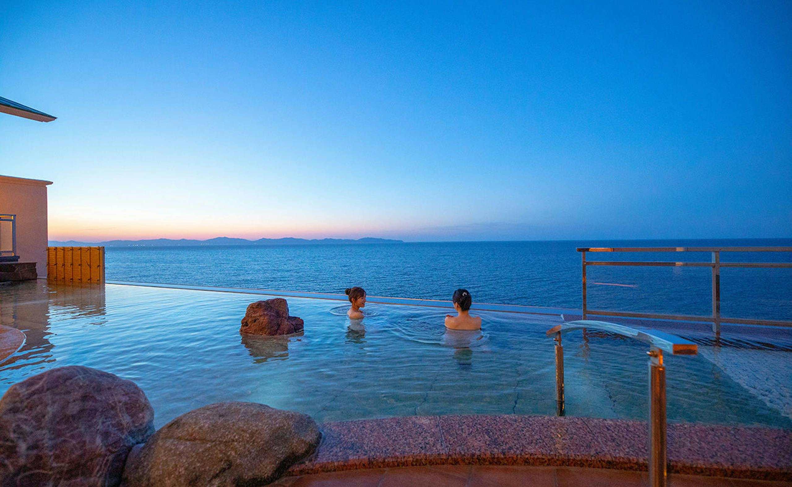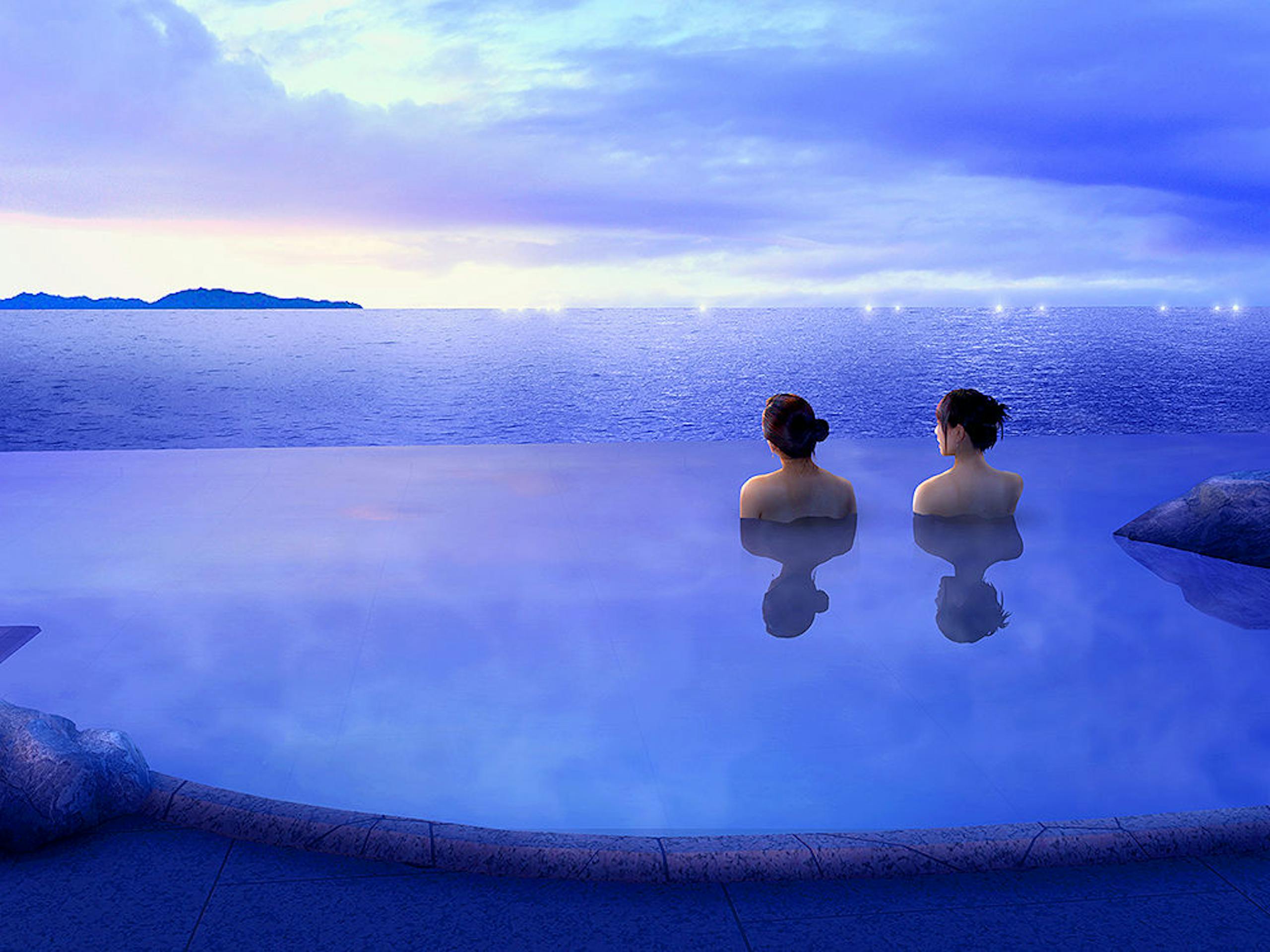 【大浴場】水平線と湯舟がひとつになる、インフィニティ露天風呂