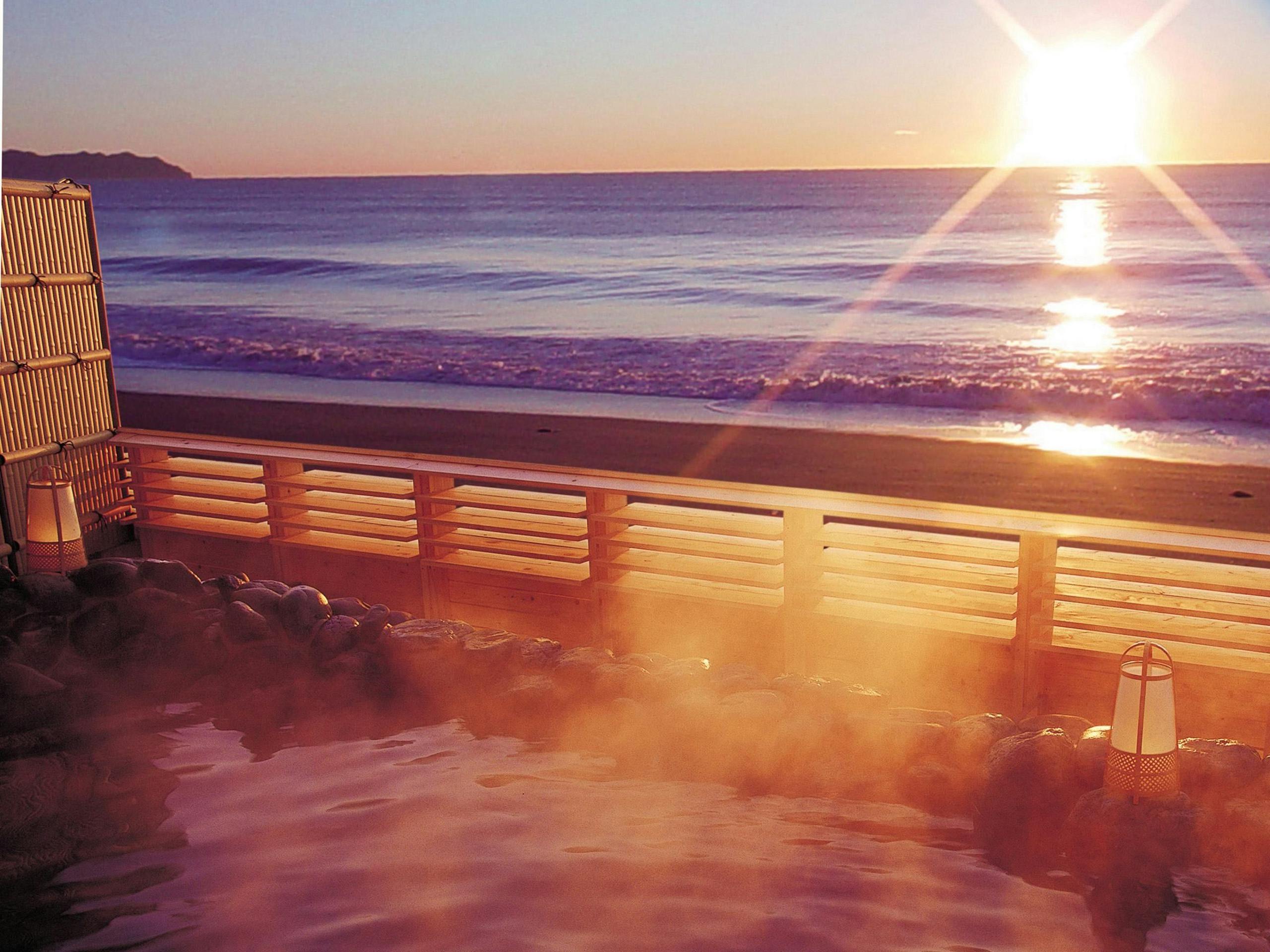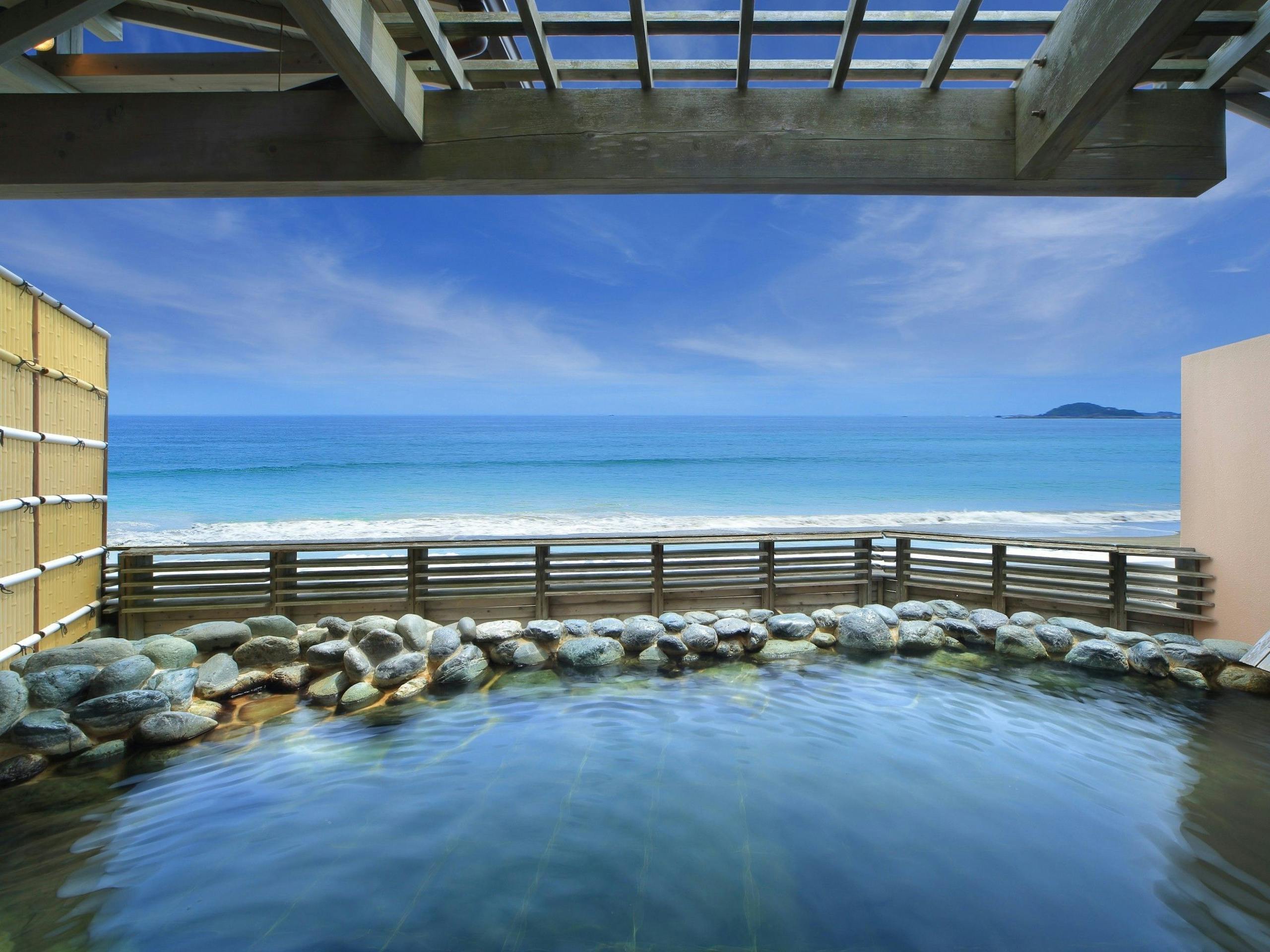海に面する露天風呂に入って、爽やかな潮風を感じ、心地よい波の音を聞きながらリラックス…♩