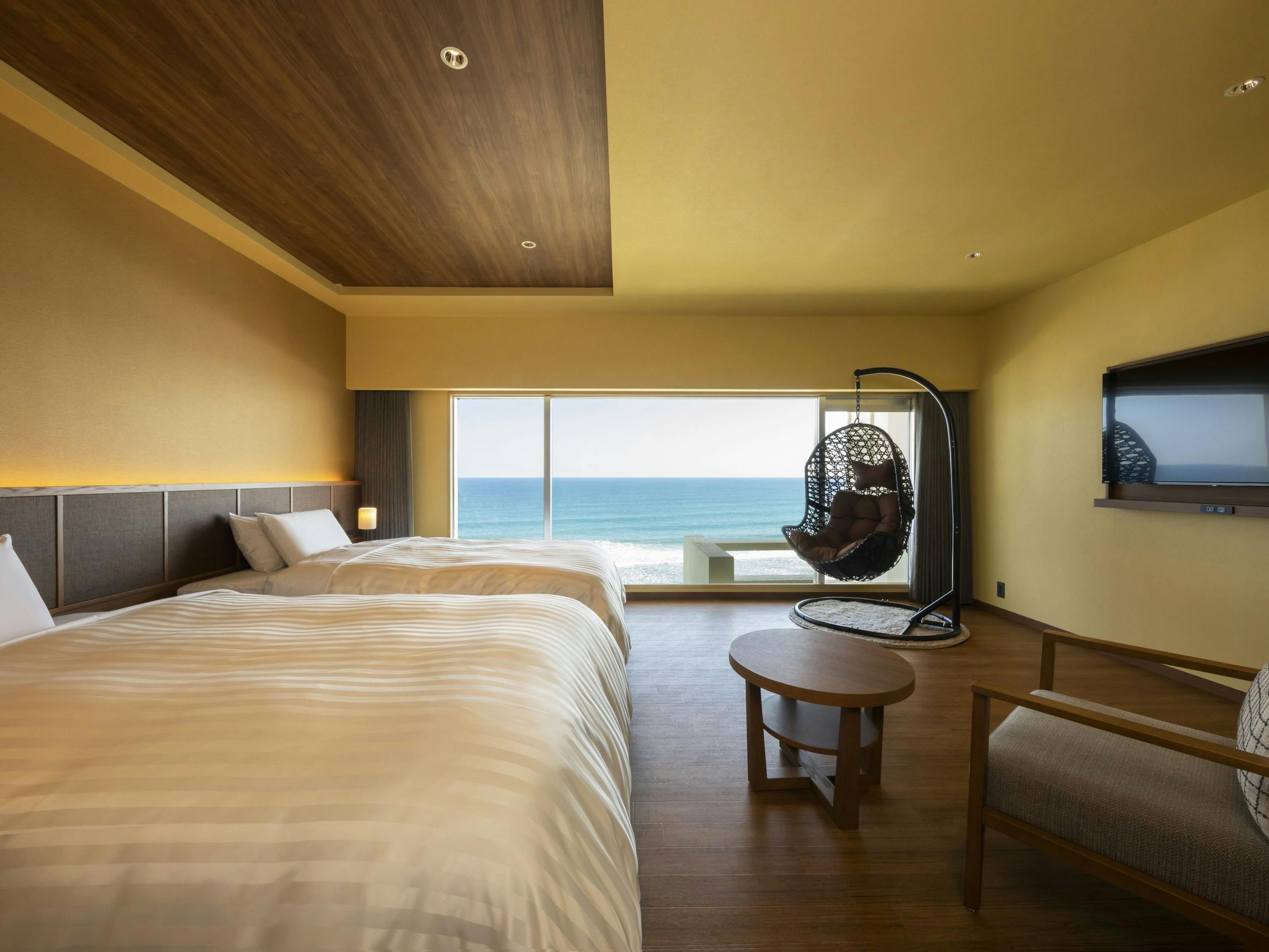 広々とした客室は、全面から海が見渡すことができ、爽やか&開放的な気分で過ごせるステキな空間。