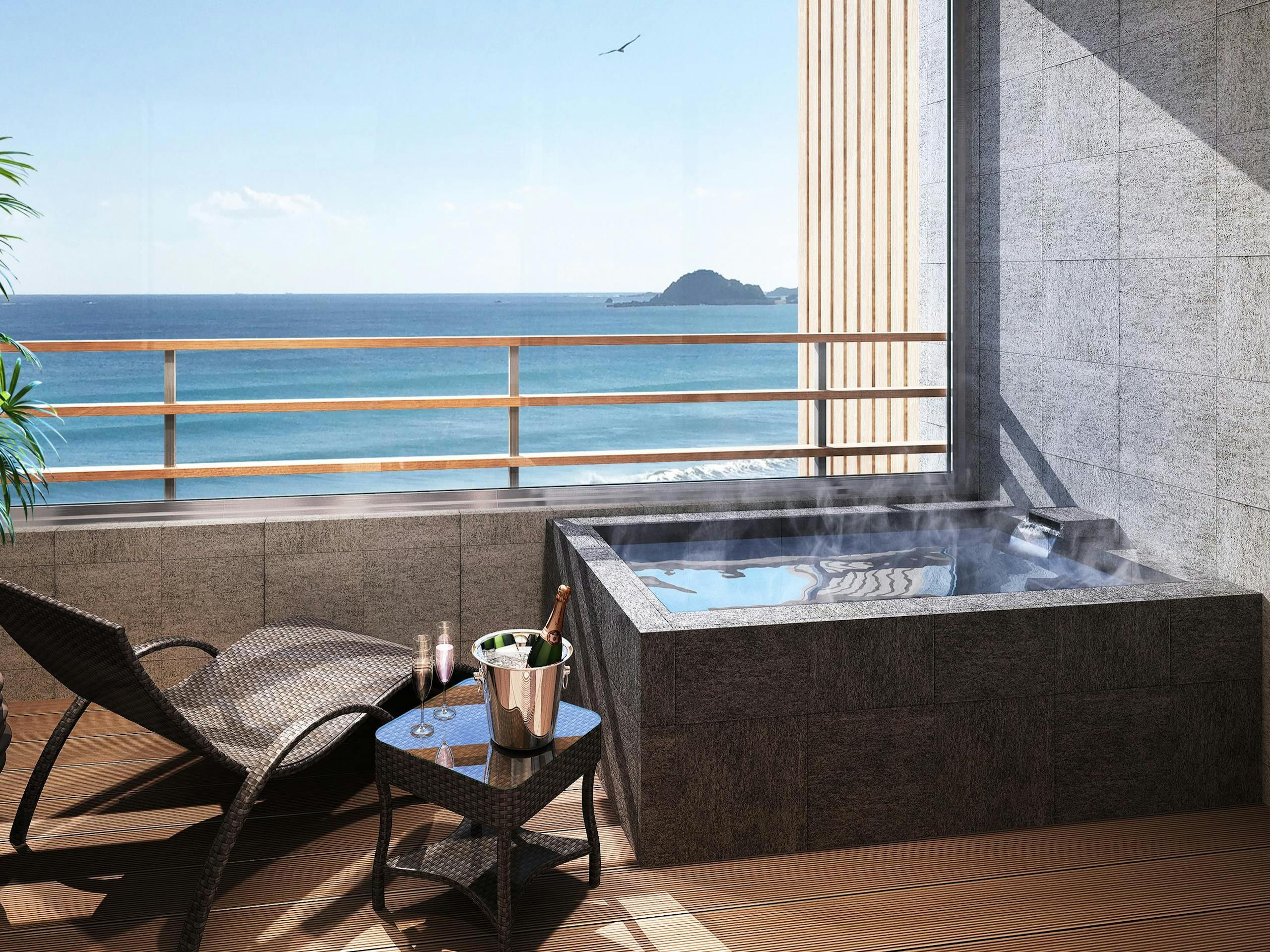 新しくできたプレミアムフロアの”露天風呂付プレミアムラグジュアリースイート”のお部屋では、非日常感じる優雅なステイが叶います◎