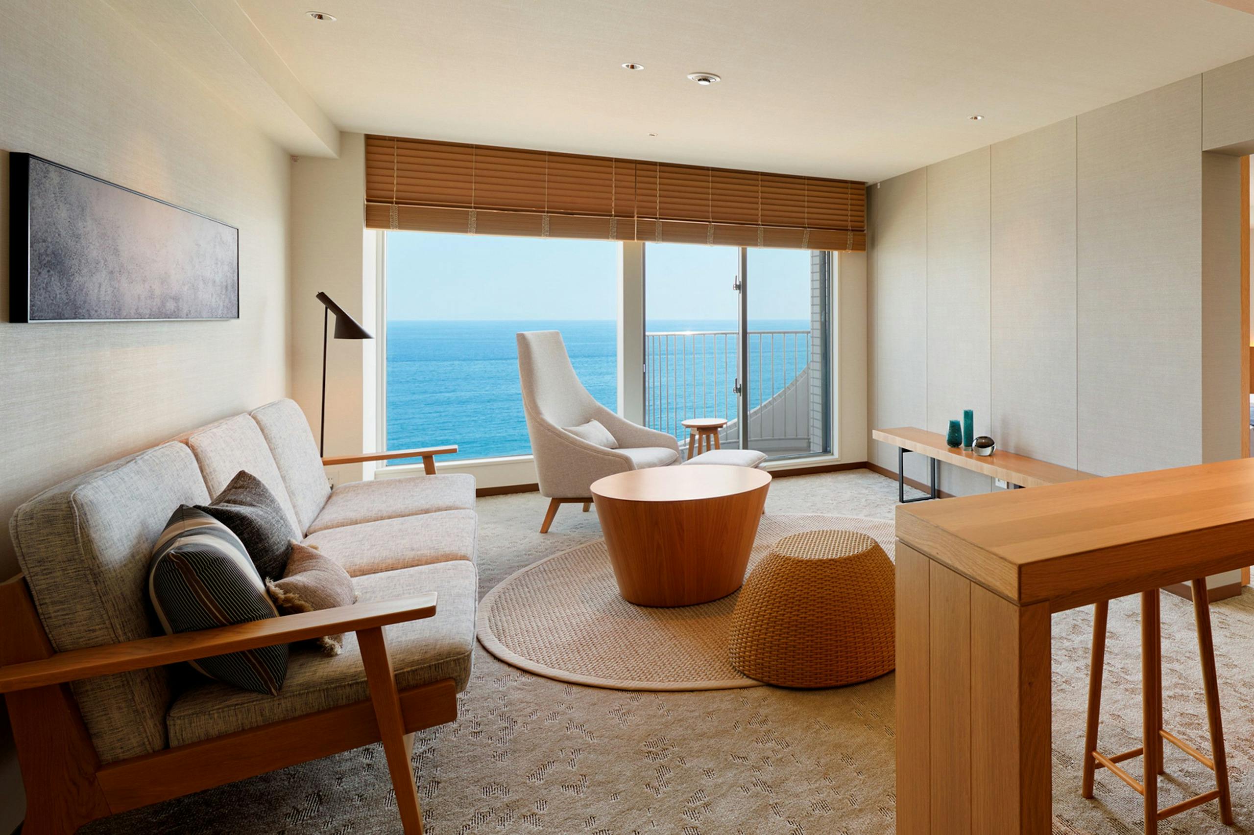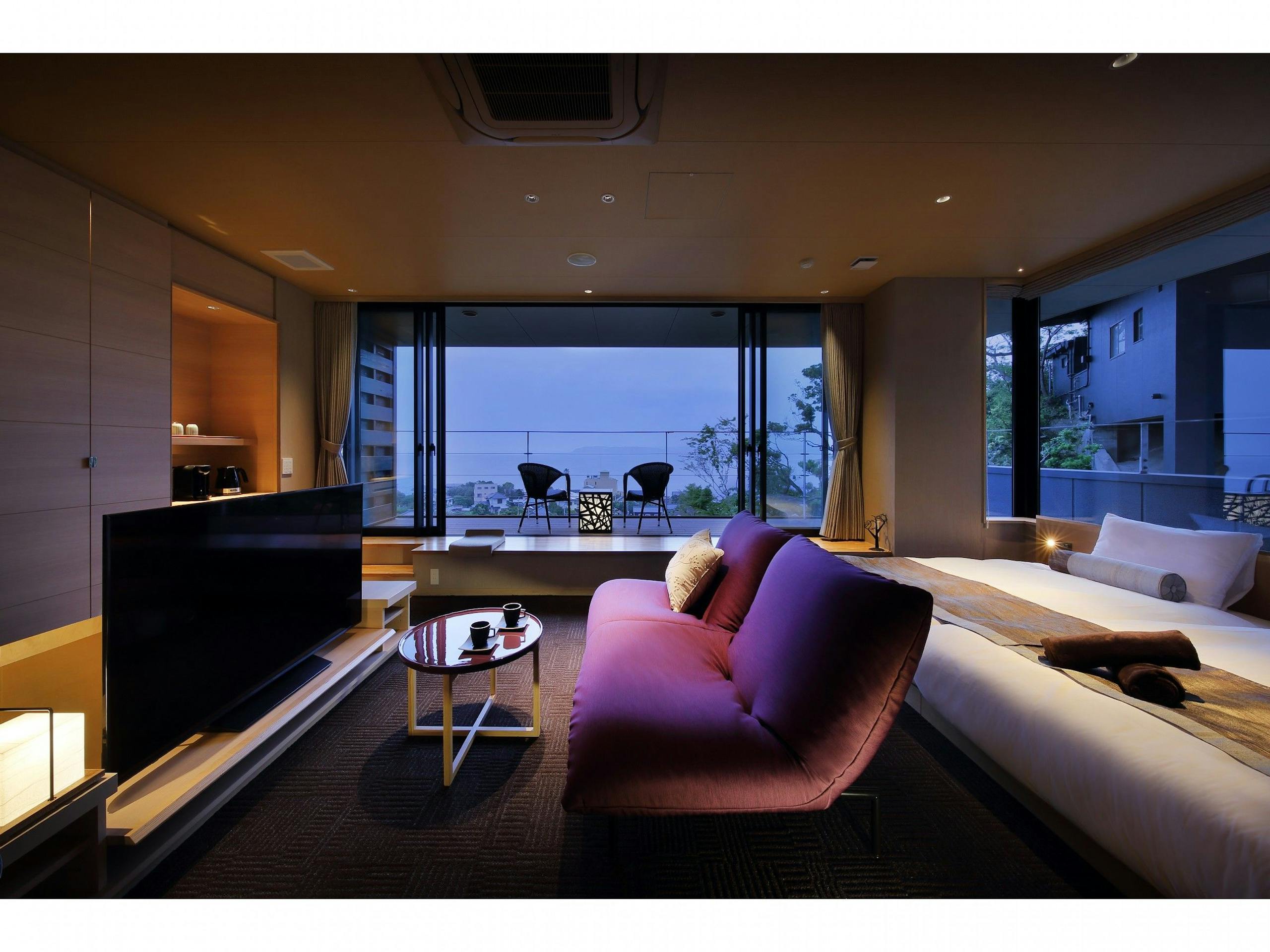 全室オーシャンビュー&温泉露天風呂付客室とハイグレードなしつらえ。