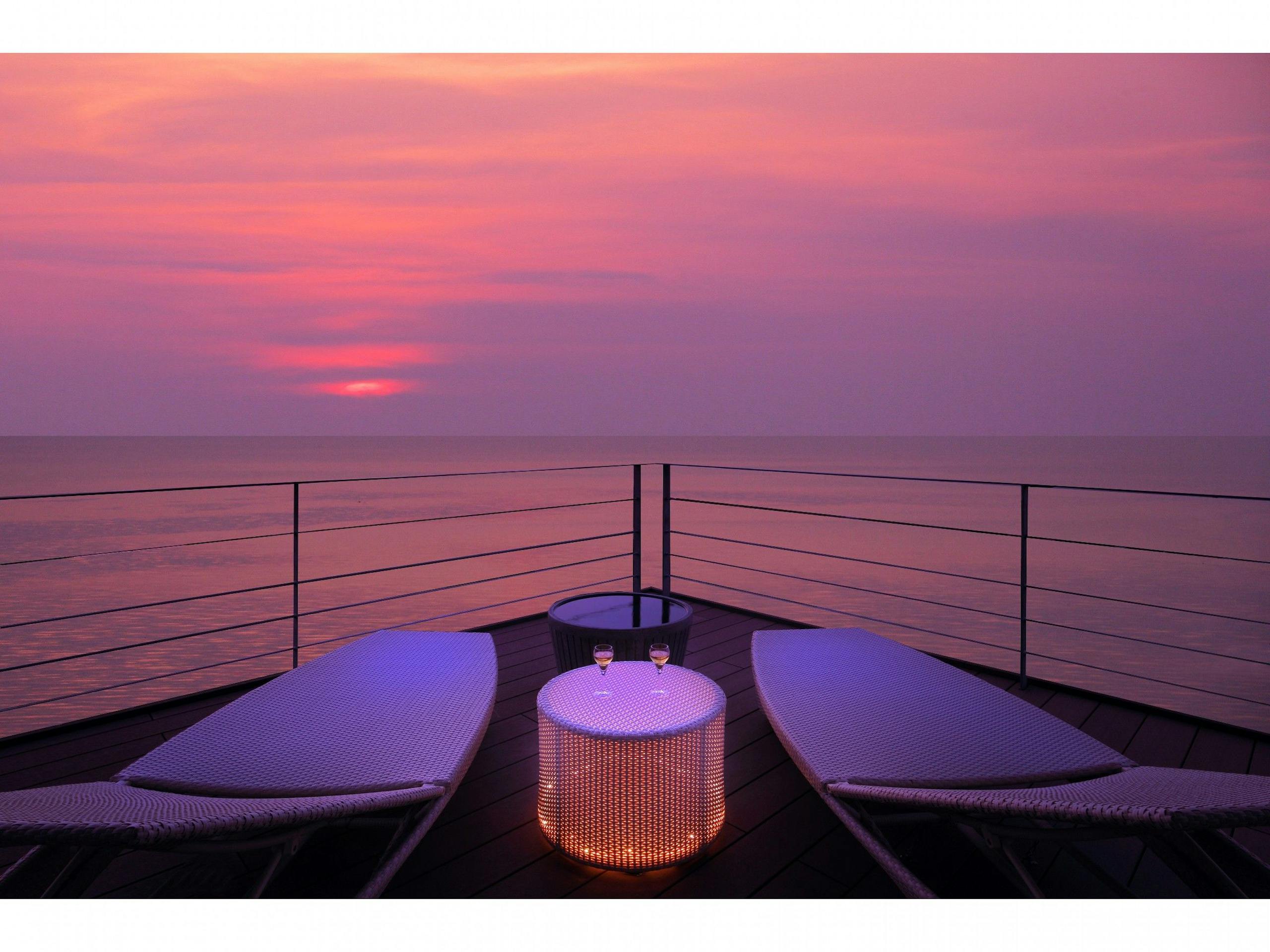 館山の海を一望できるロケーションは、朝昼夜どの時間帯も美しい景色を見ることができます。