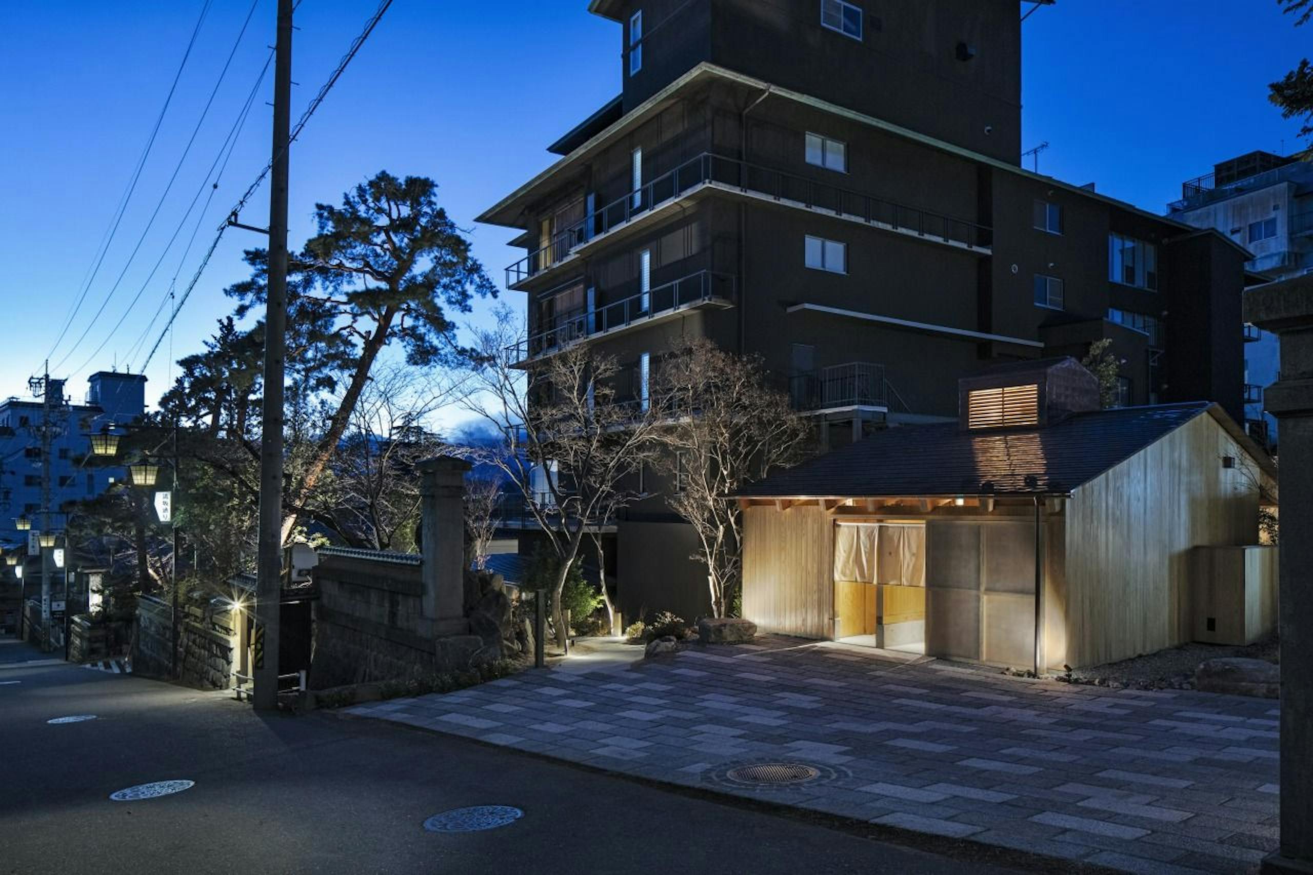 松本駅からバスで約30分。歴史ある浅間温泉街の中に佇む「松本十条」