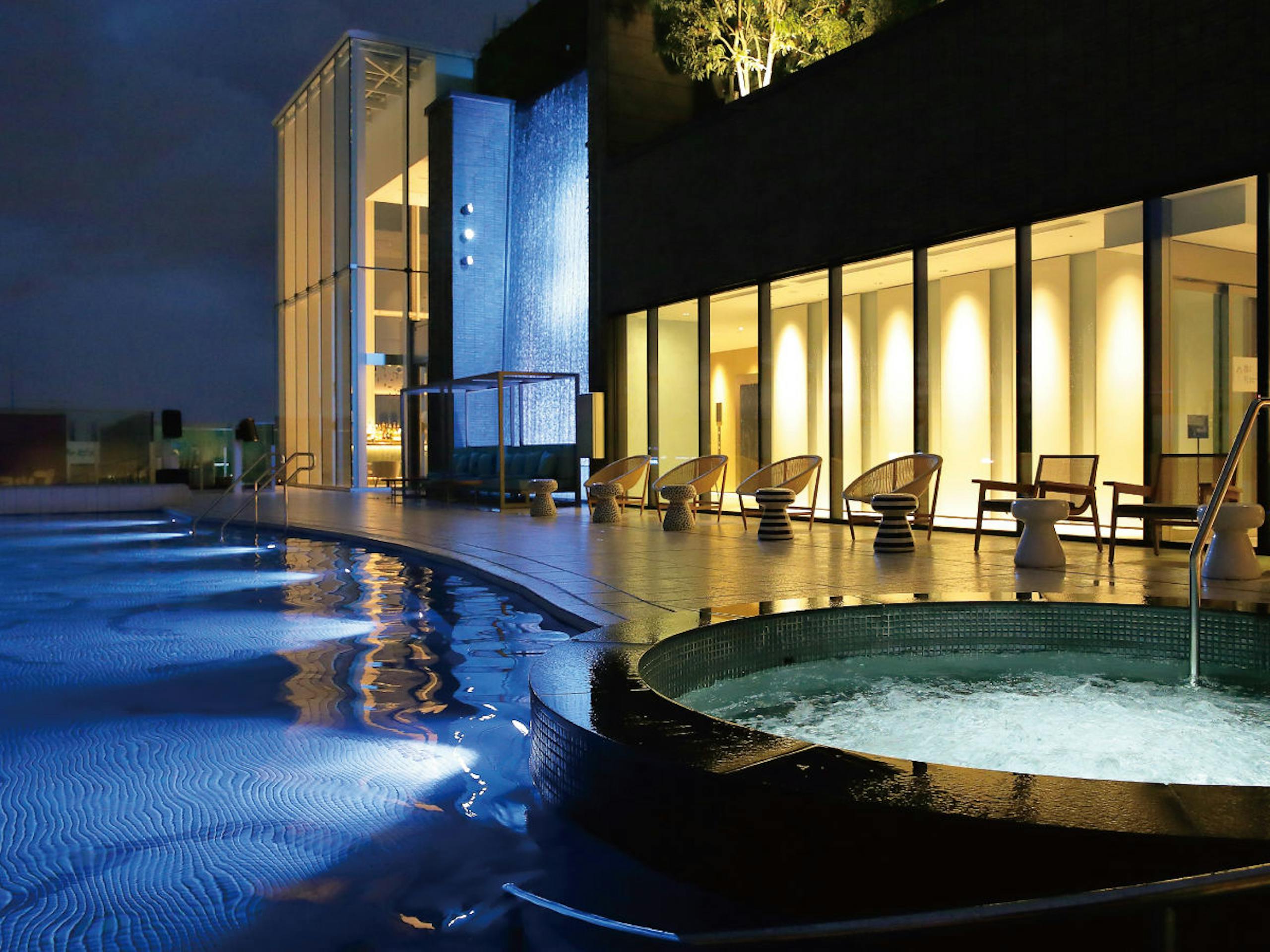 幻想的に灯るライトが、プールや博多の景色をより一層綺麗に魅せてくれます。