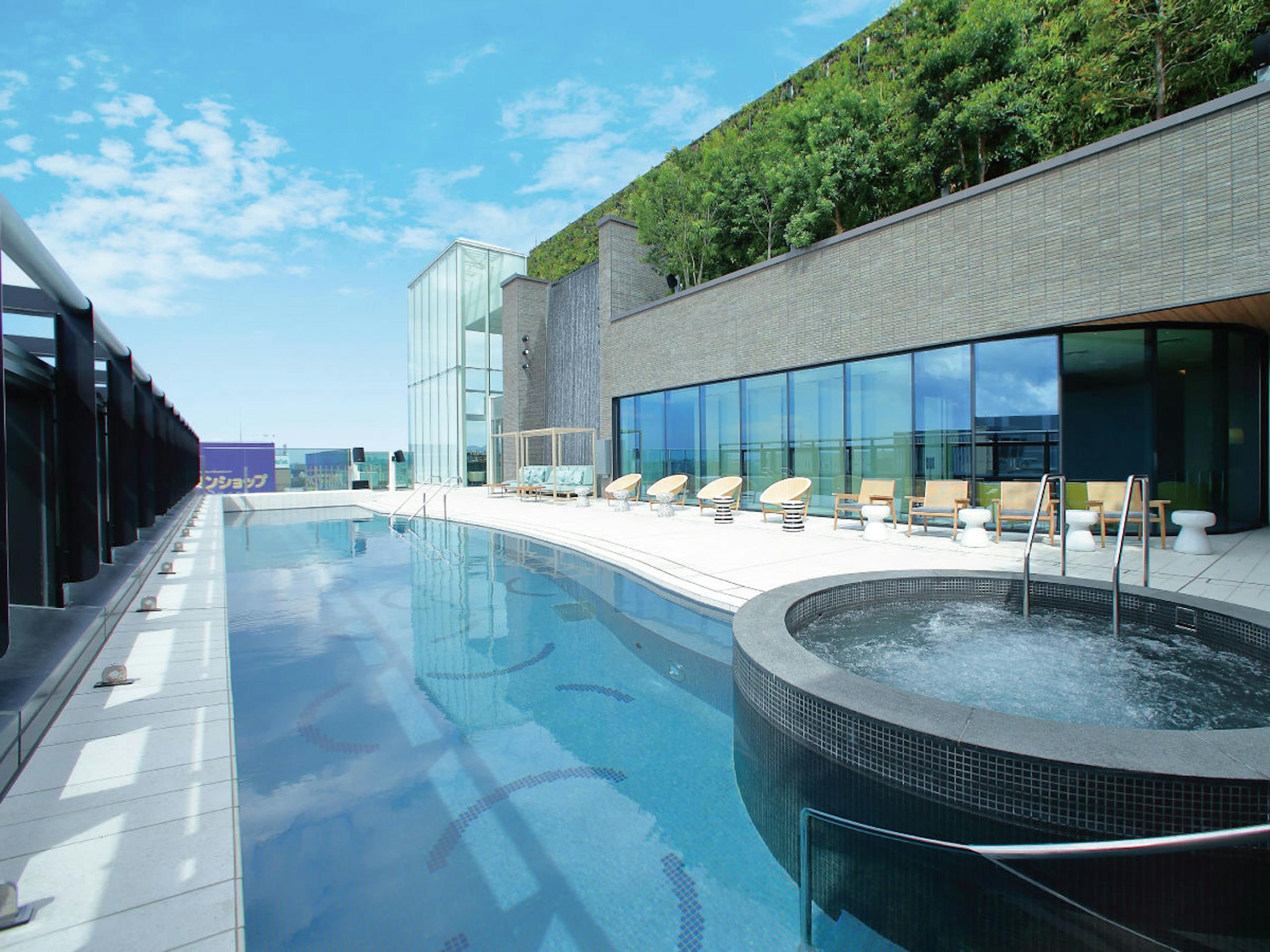 屋上には天然温泉のプールがあり、カップルで楽しむにはオススメのホテルです♩