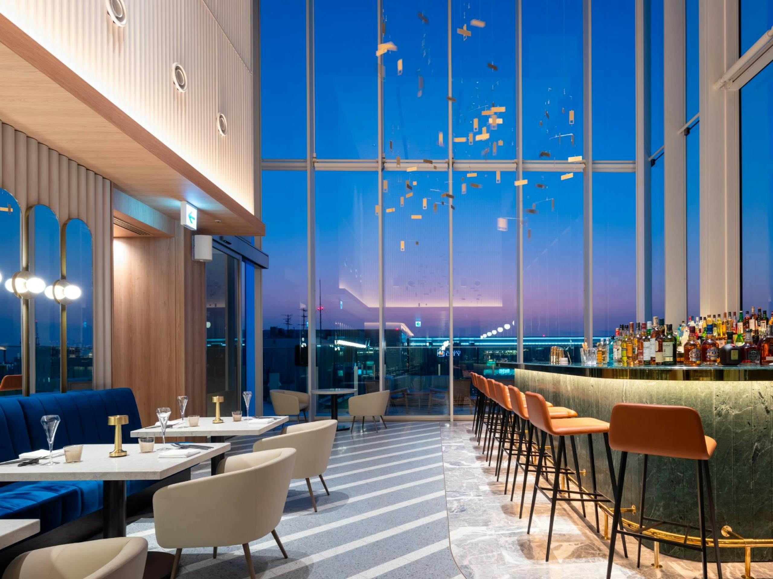 ガラス張りの窓からは、最上階だからこそ望める素敵な景色と開放感が楽しめます。