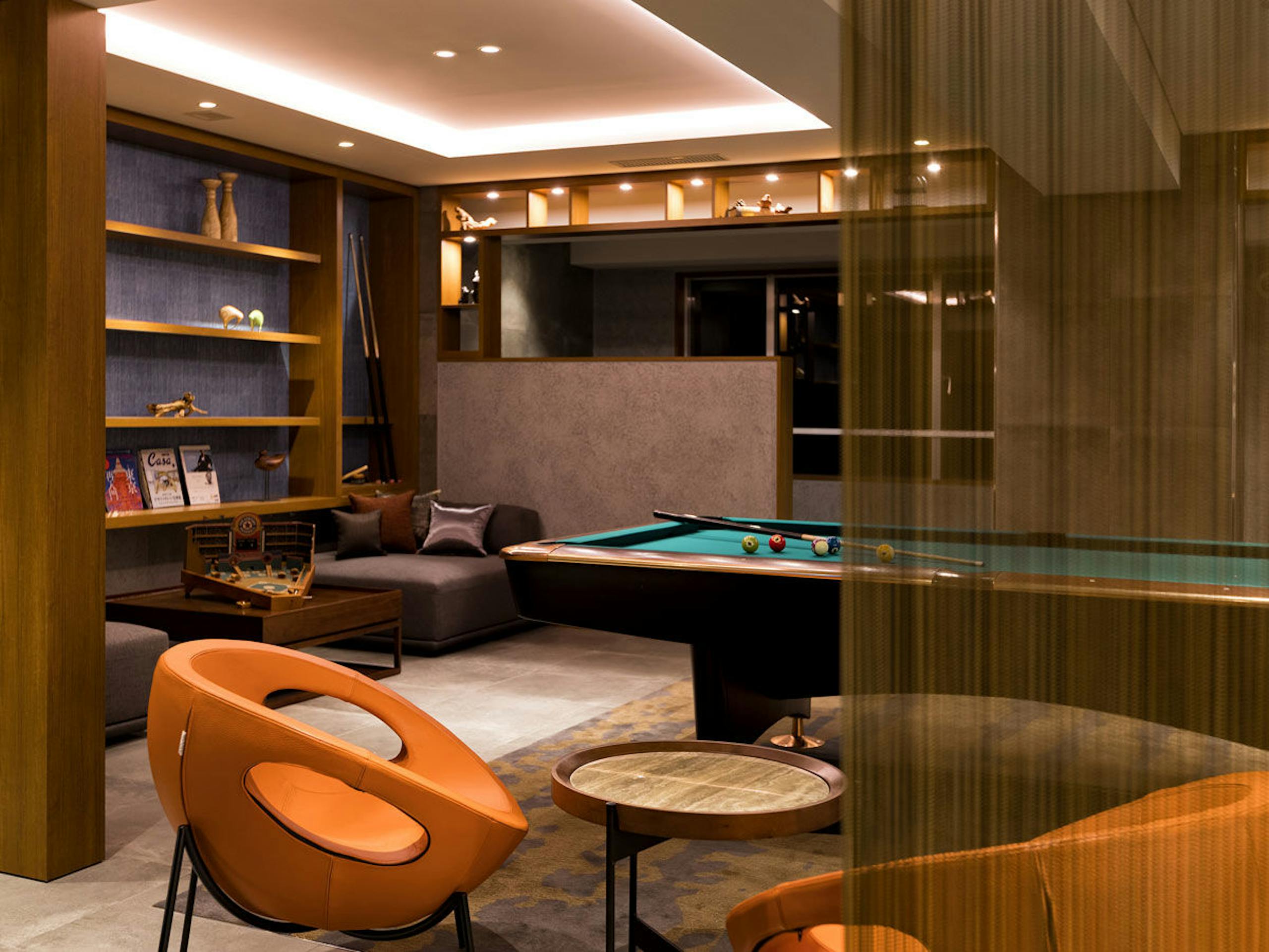 ビリヤード台を備えた、ゆっくりと過ごせる空間。