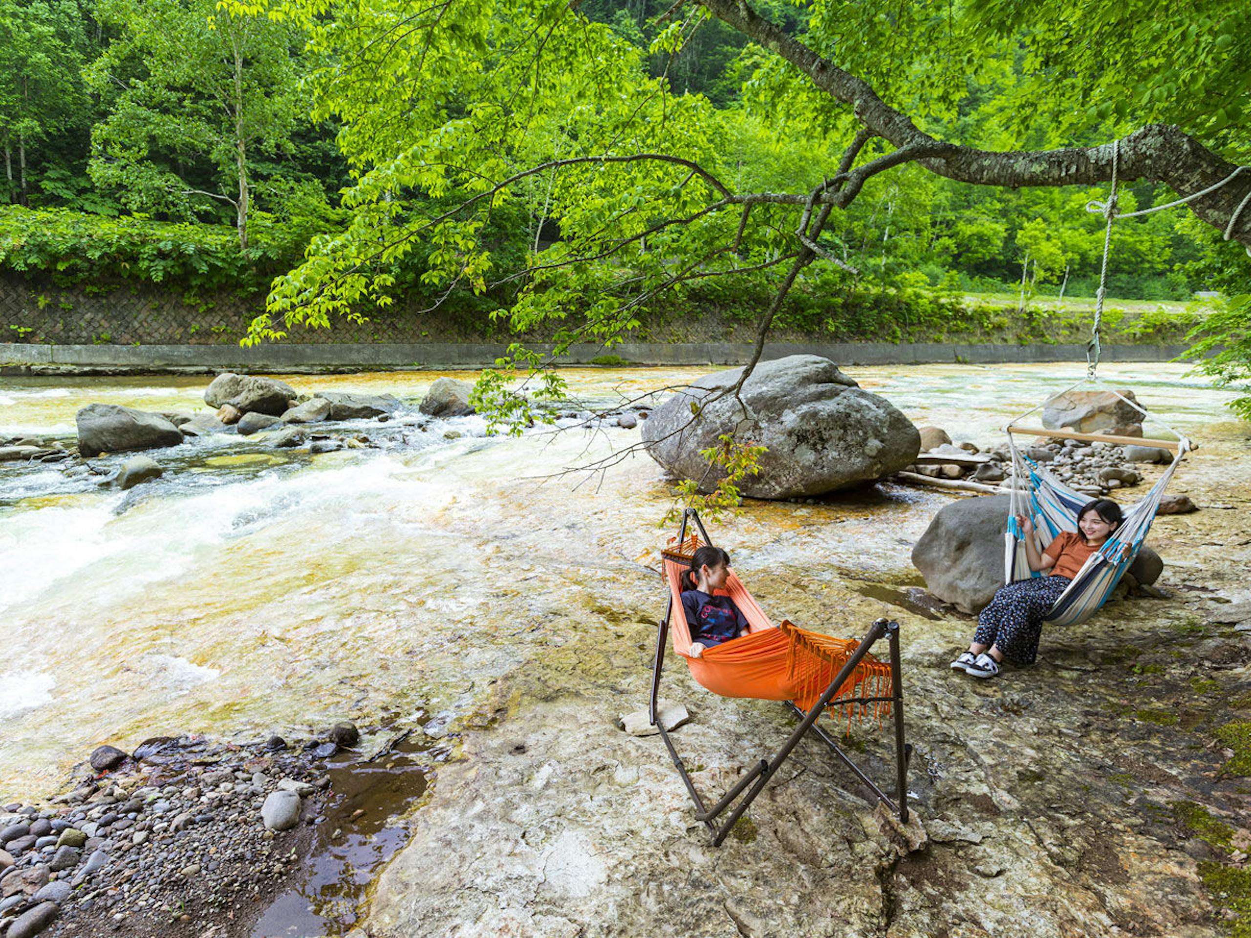 葉がゆすれる音、川のせせらぎ、木漏れ日、全てが心地よい、これ以上ない最高の時間を過ごせます。