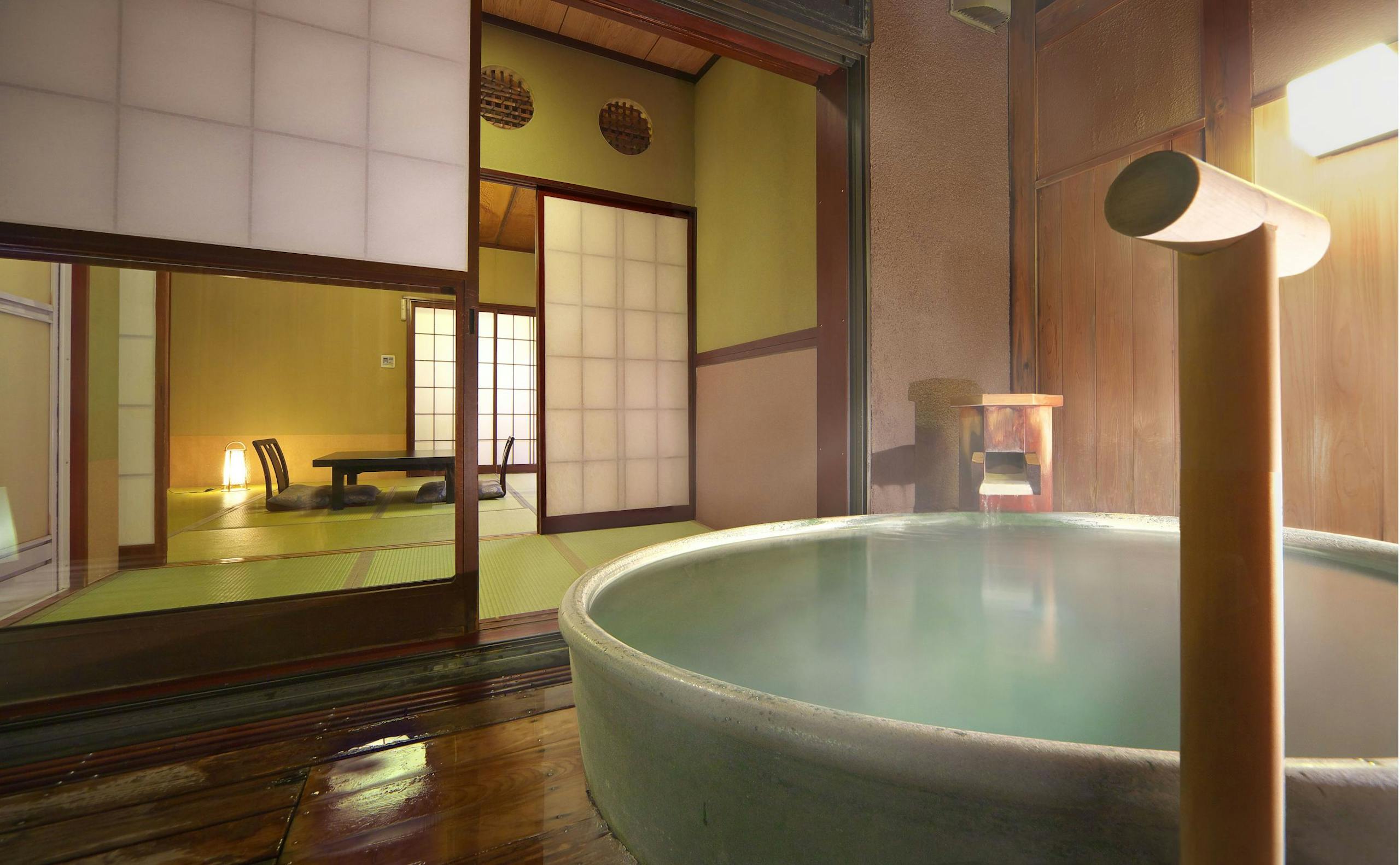 畳のお部屋付きの貸切風呂という粋な設計。