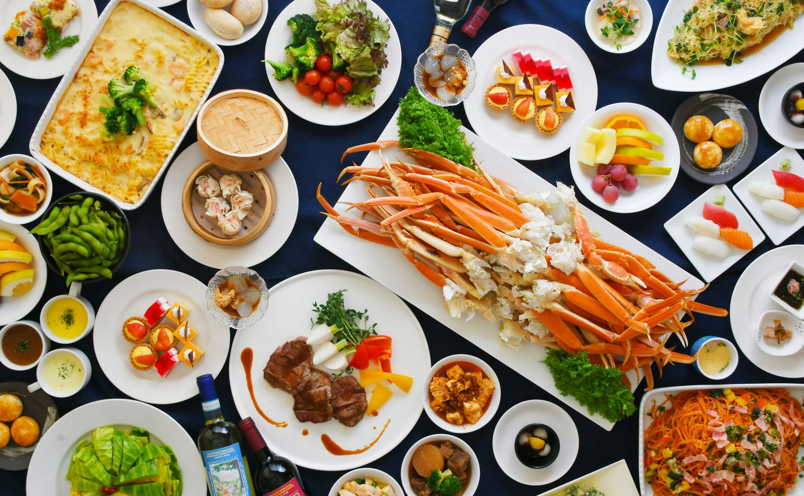 お食事はビュッフェや日本料理、フランス料理、中国料理などバリエーション豊富なラインナップ。