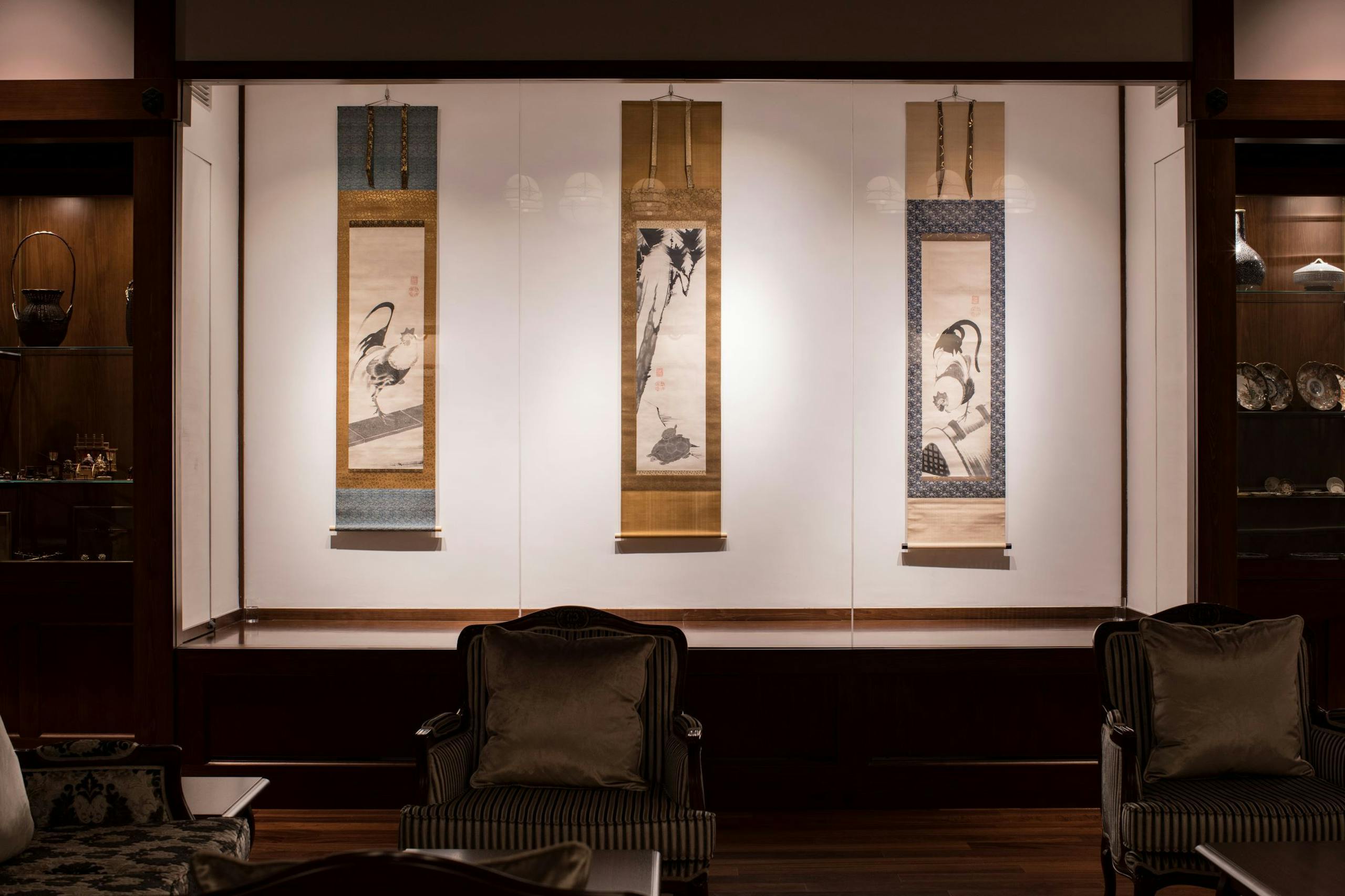 「旅に出逢いと彩りを」をコンセプトに、江戸時代の絵画や、昔の美術・工芸品を館内の至る所に展示してあります。