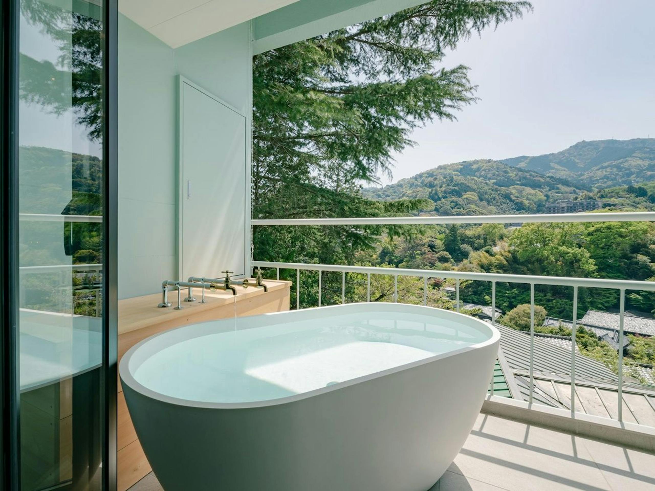 客室内にはワインセラーがあり、温泉に浸かりながらワインを嗜むことも。