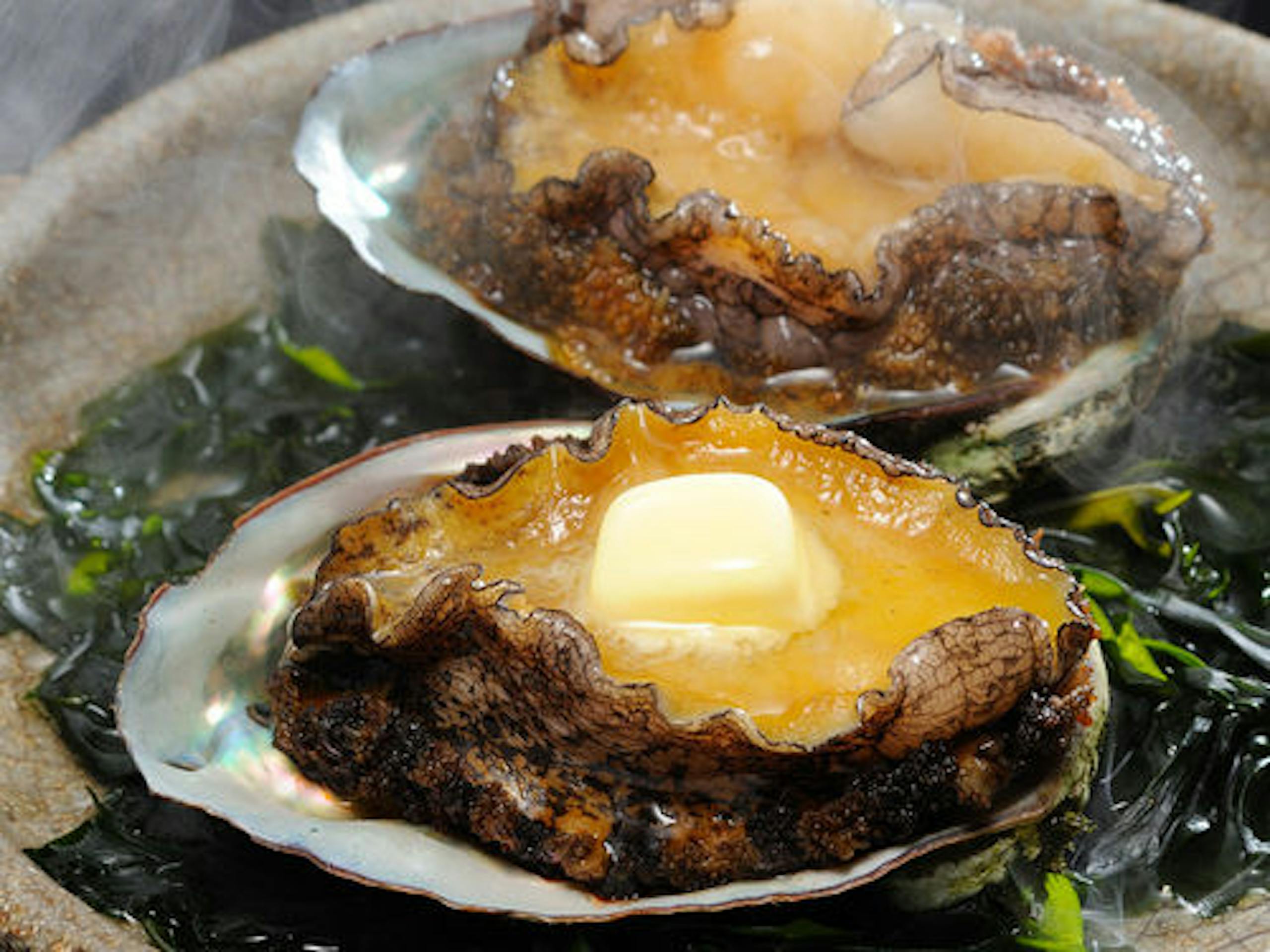 アワビの陶板焼き。