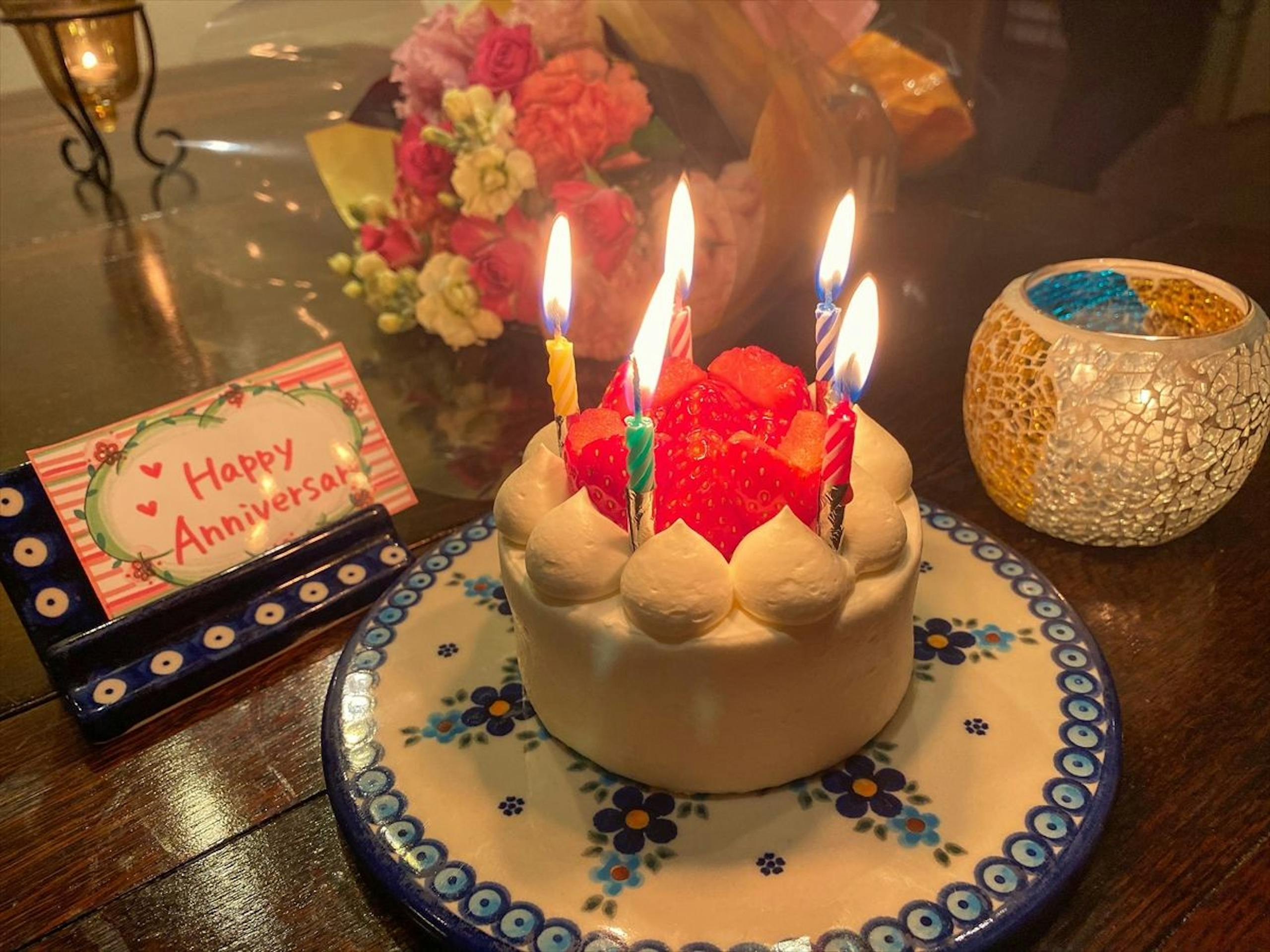 記念日にはケーキと花束を