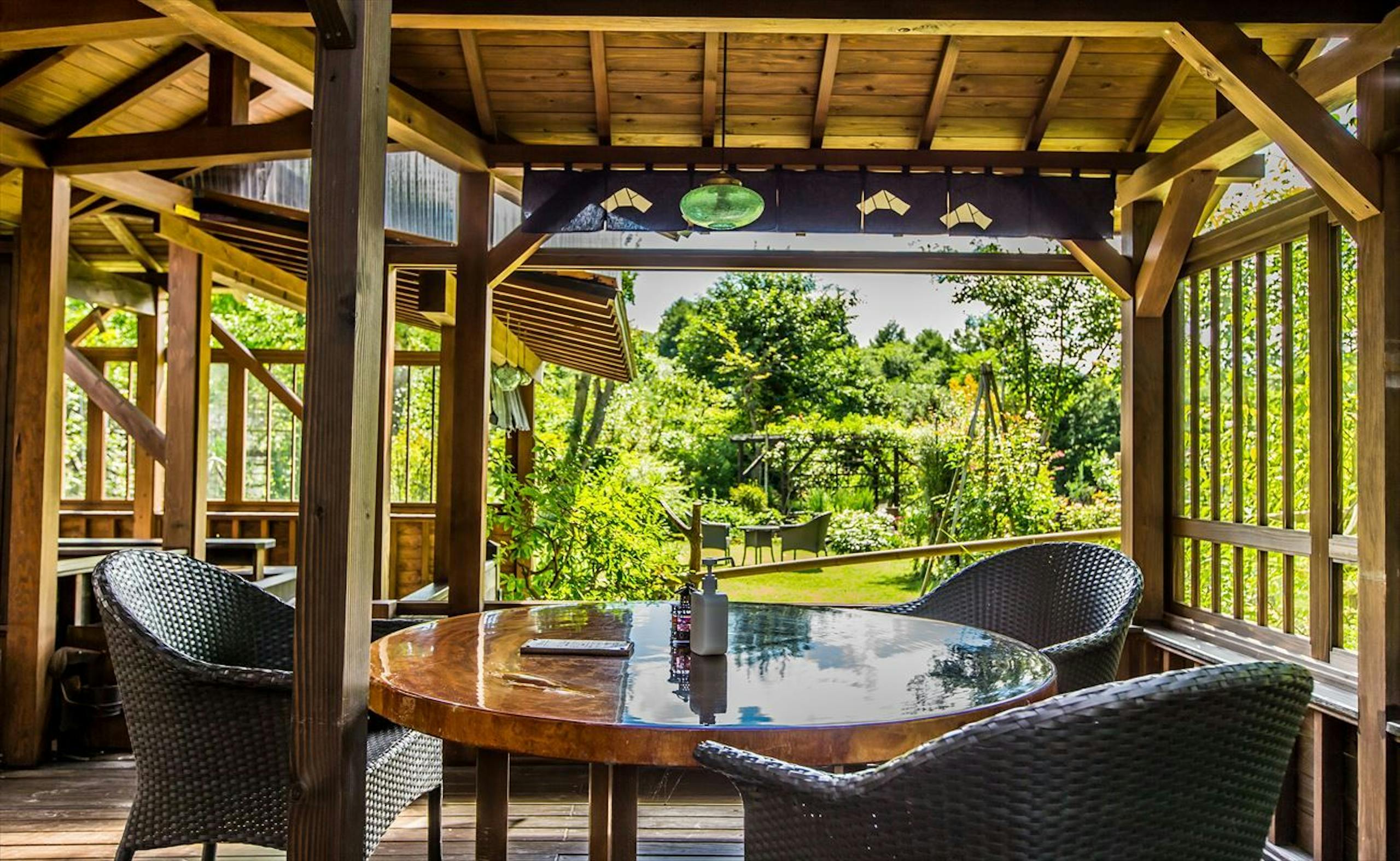 屋根があるので、雨の日でも安心。とても心地よい空間です。