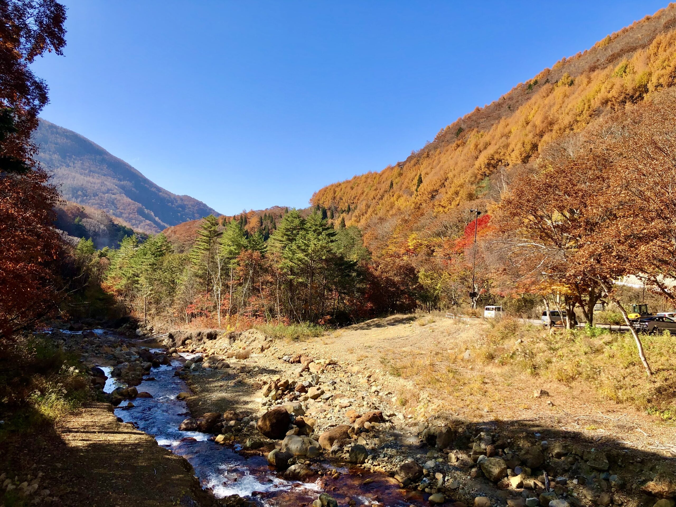 特に秋は、松川渓谷を彩る紅葉が見れるので、最高の景色を堪能できます。