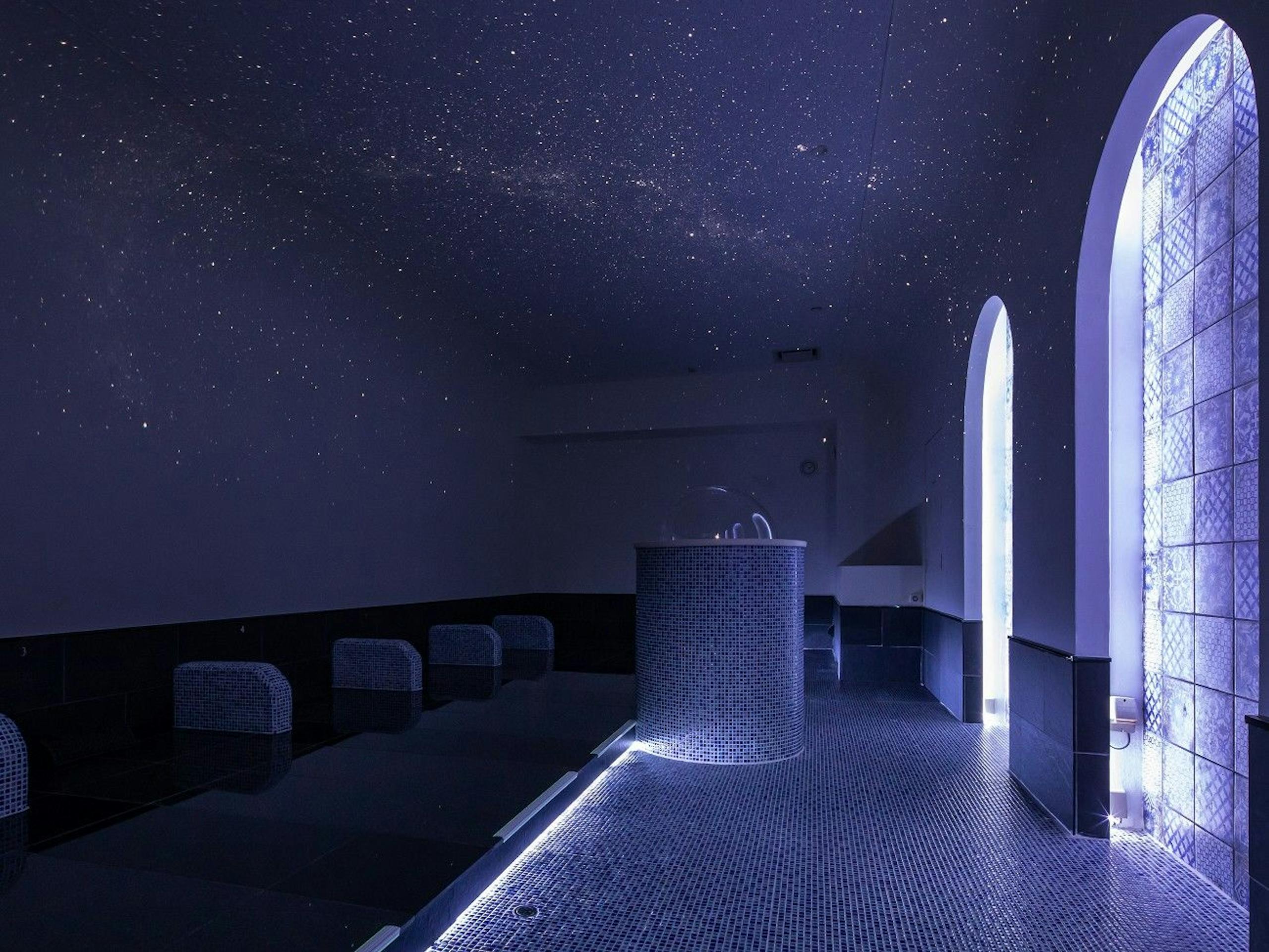 畳が敷かれ、柔らかな歩き心地のお座敷風呂