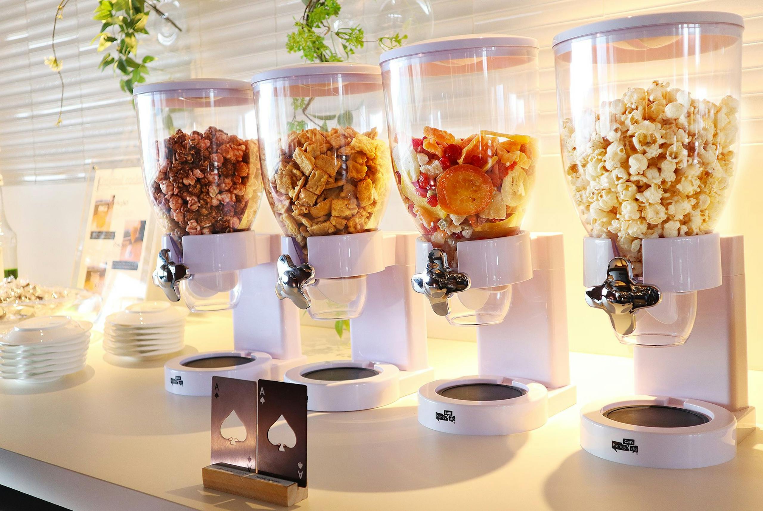 ラウンジでは、おつまみとドリンクをフリーでいただけちゃいます。