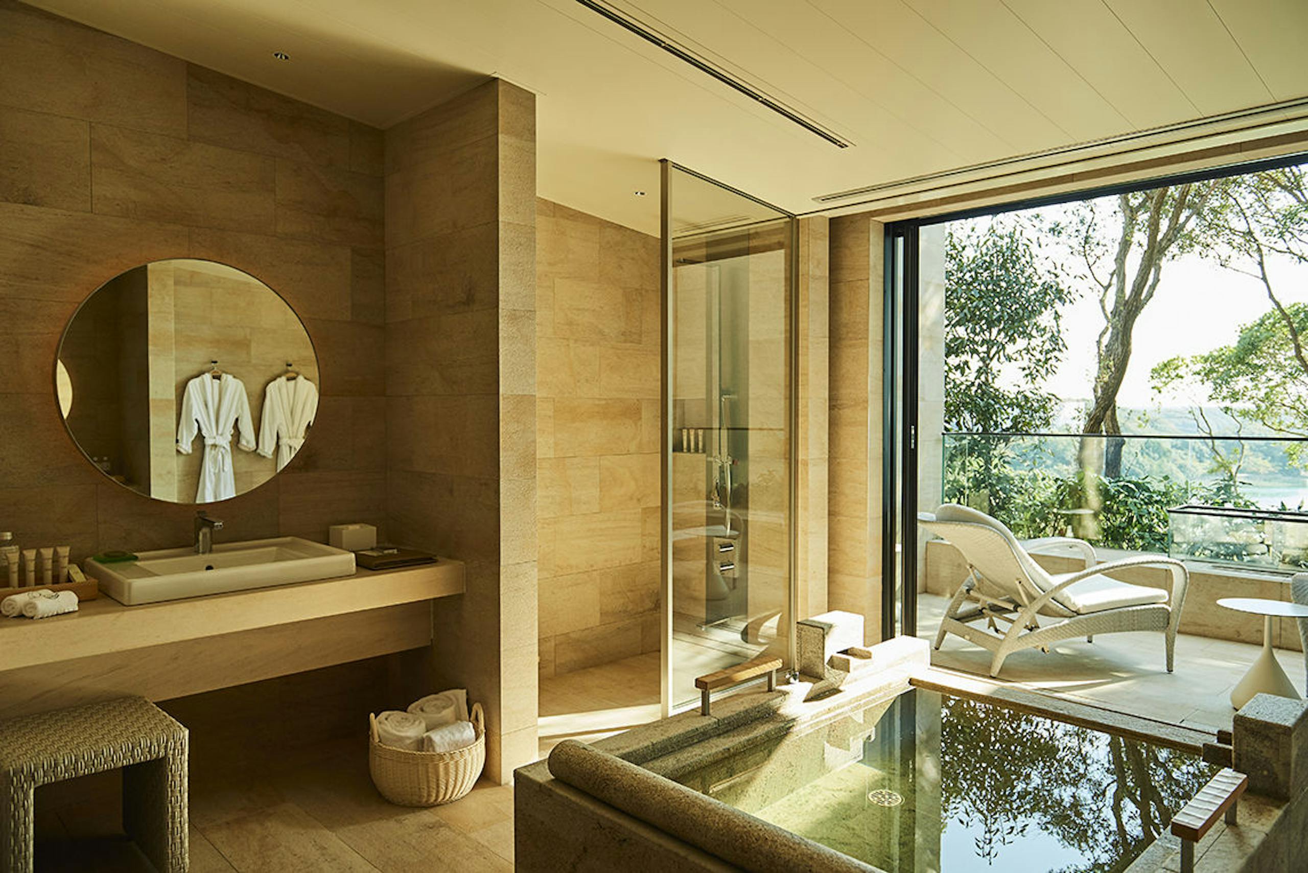 英虞湾を眺める貸切露天風呂で、奥志摩浜島温泉の湯を堪能。