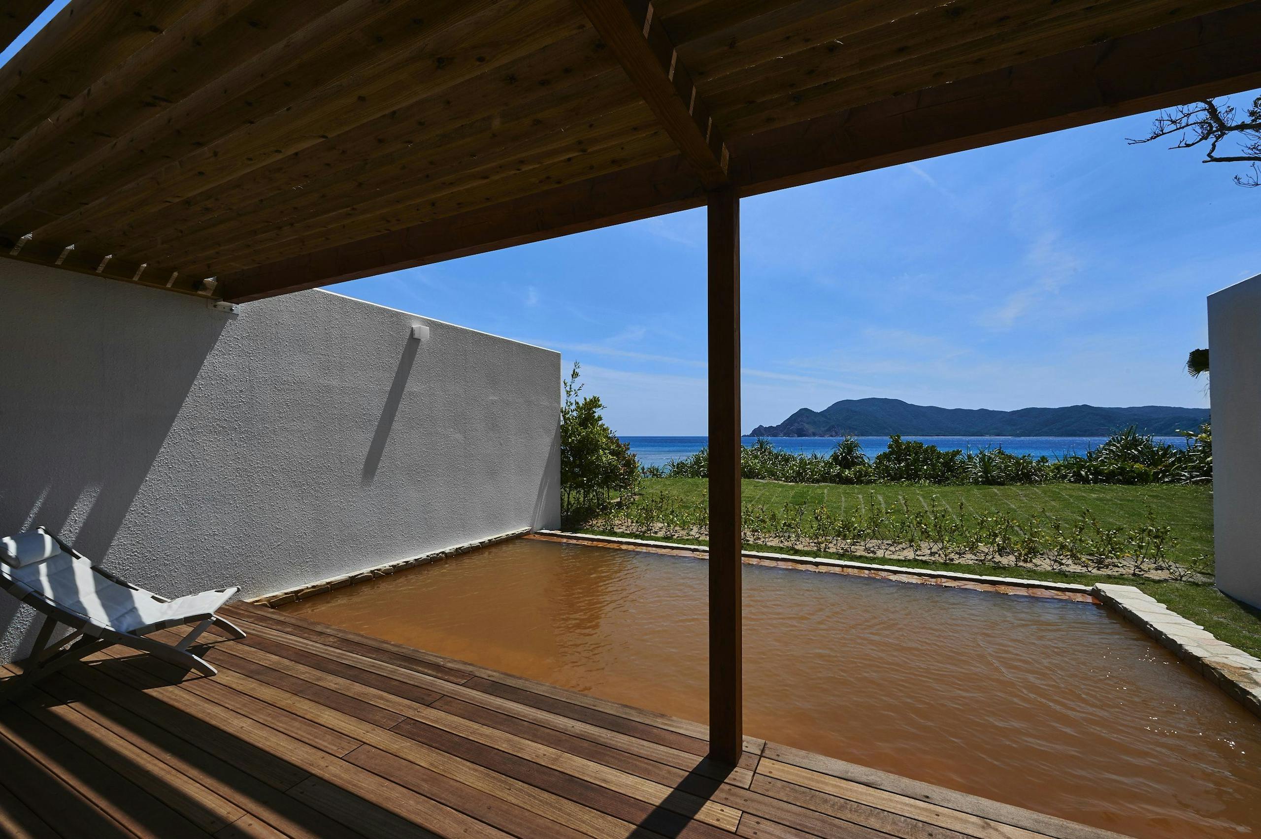天然温泉「きゅらの湯」で海を眺めながら温泉にゆっくり浸かる、贅沢なひととき。