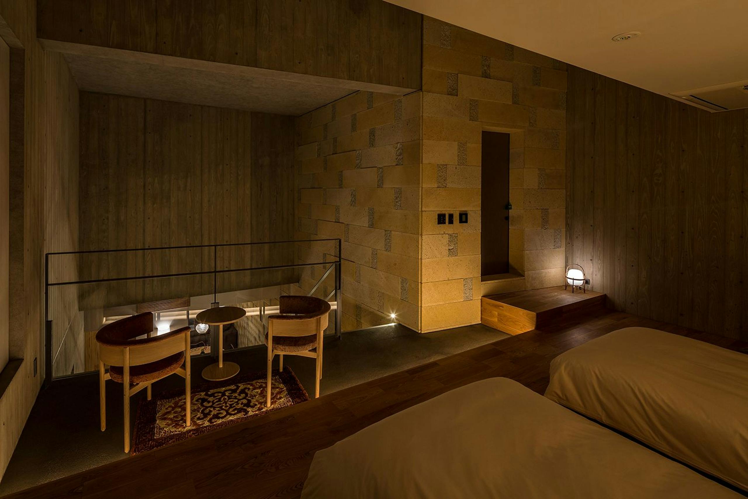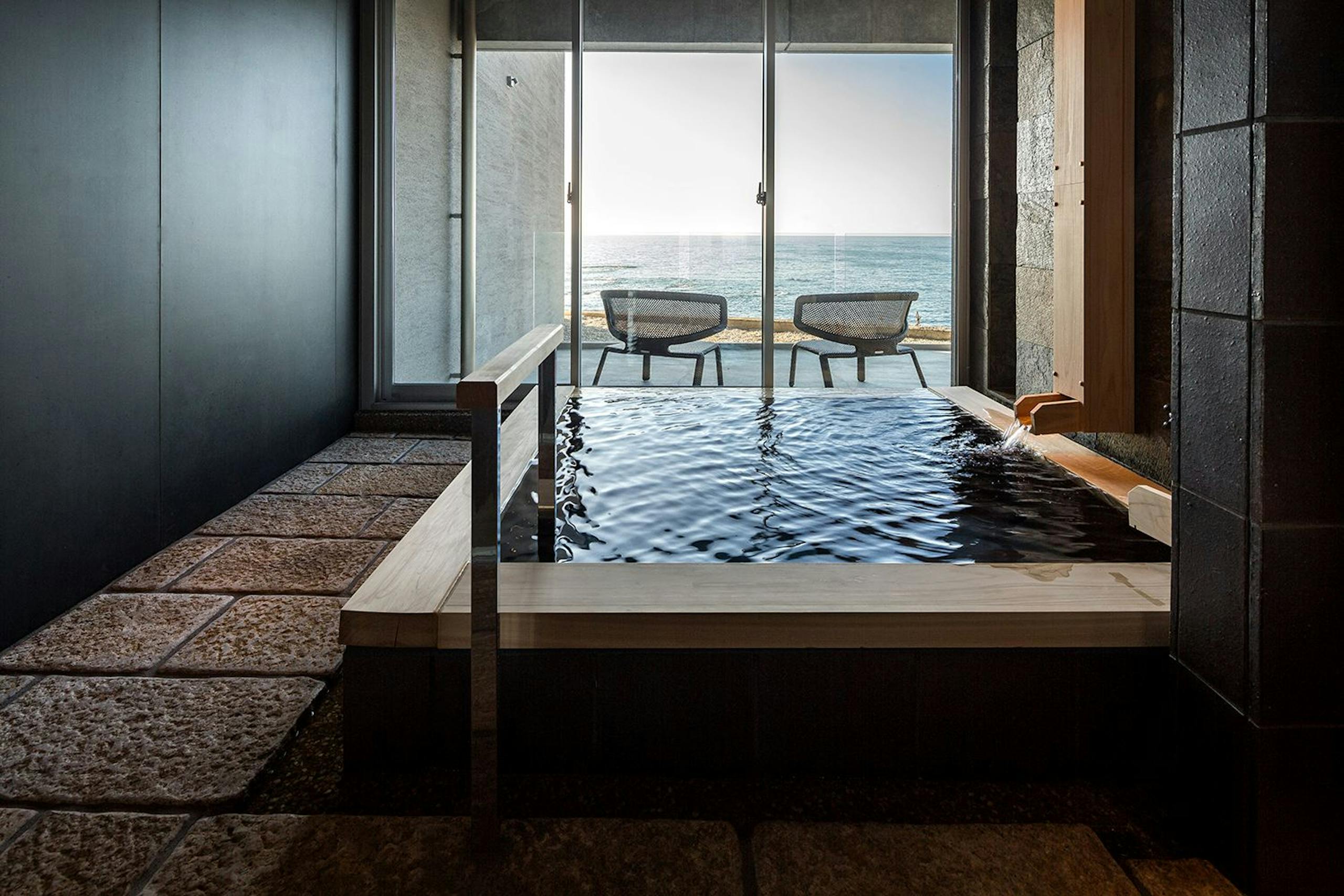 すべてが温泉かけ流しの浴室を備えた、スイートルームの造りとなっています。