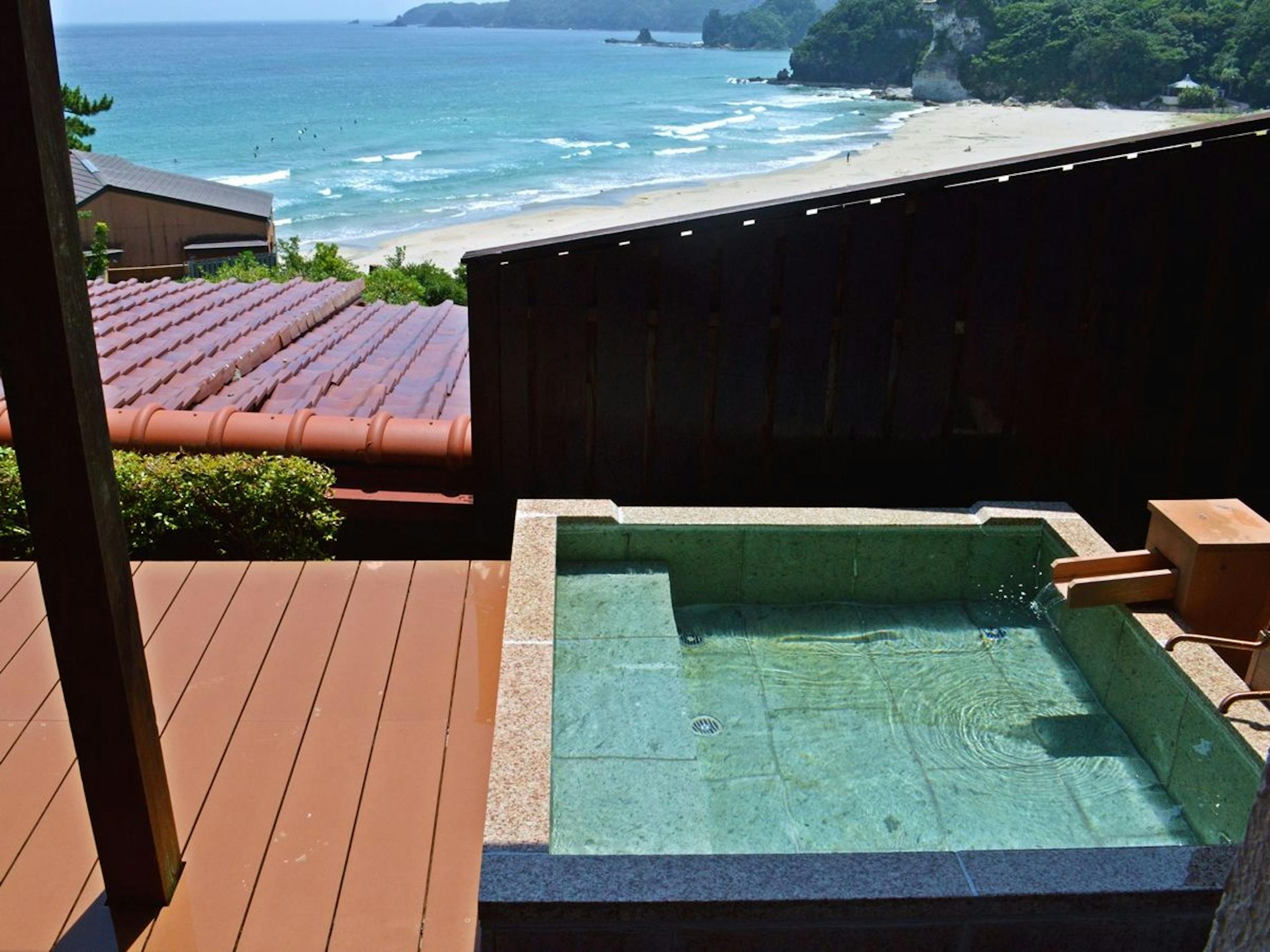 多々戸浜が望める最高のロケーションの温泉は、海で遊び疲れた体をほぐしてくれます。
