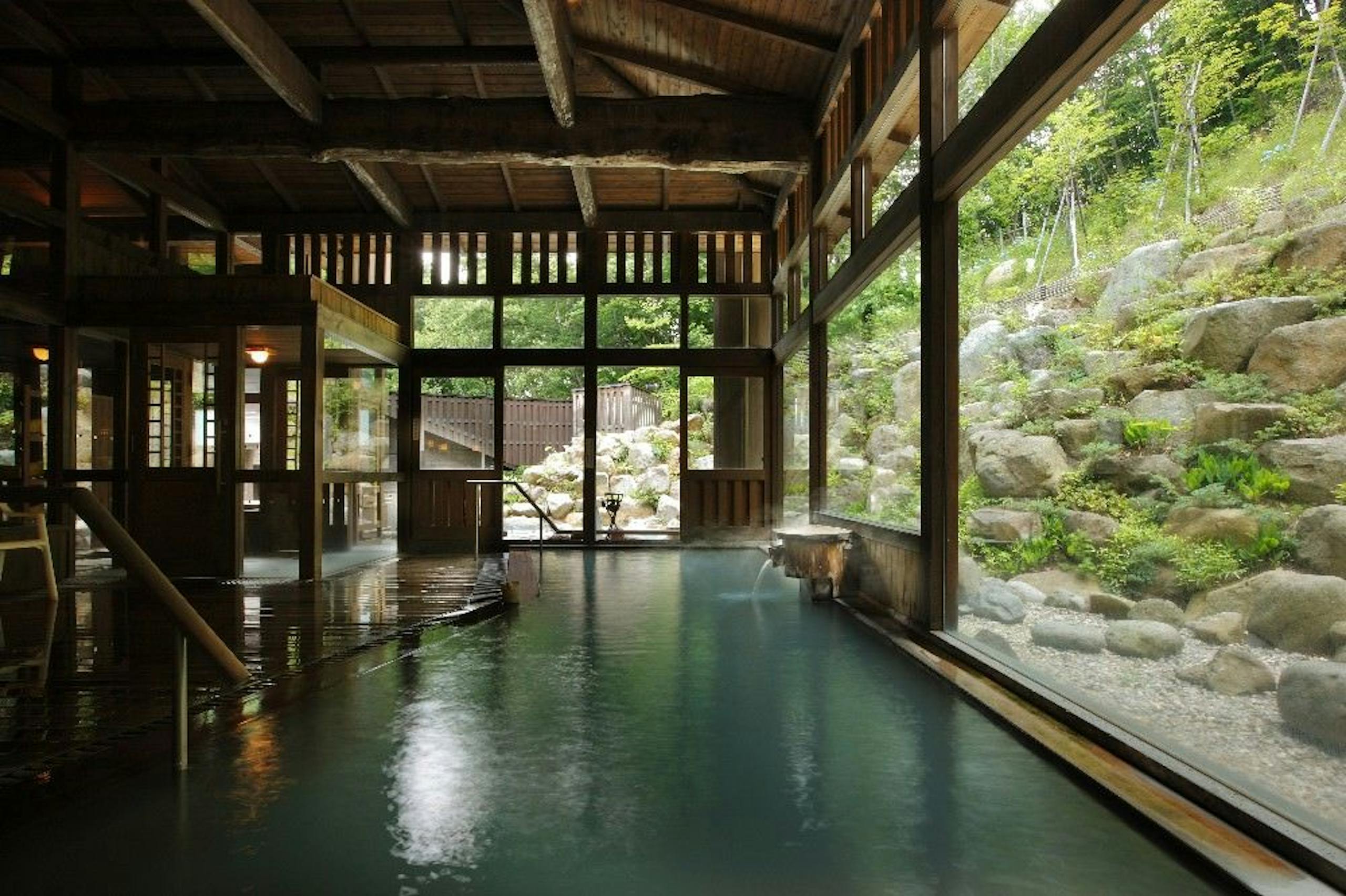 むきだしの梁が印象的な大浴場