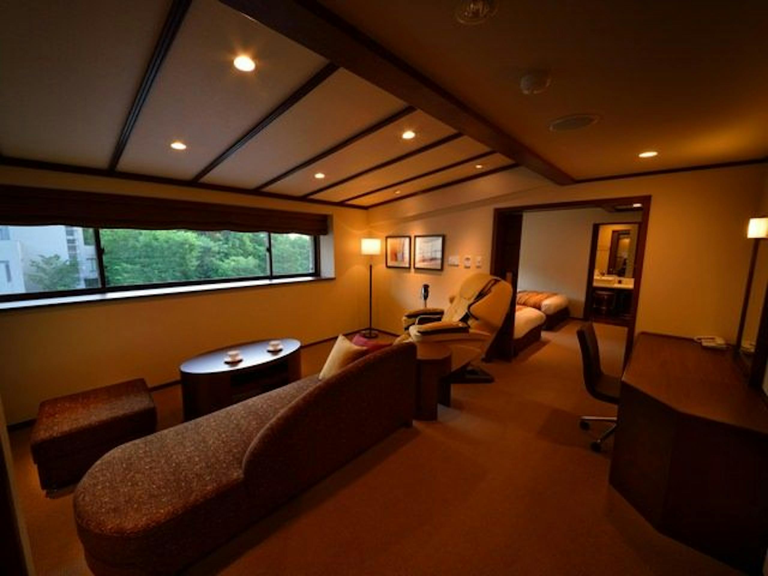 ジュニアスイートのお部屋は、リビングルームとベッドルームが分かれておりゆったりできる内装。