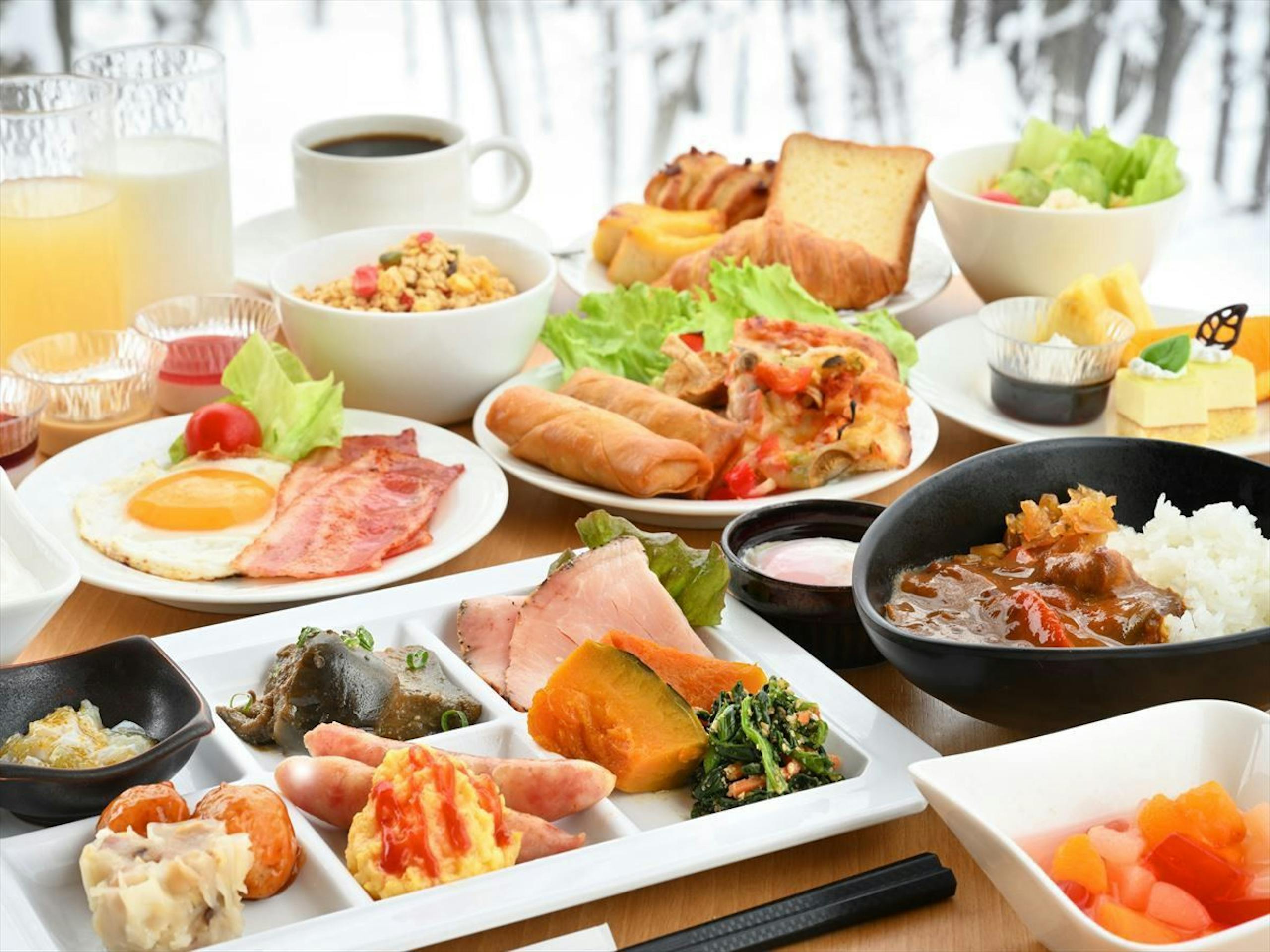 和洋数々の品を取り揃えている朝食